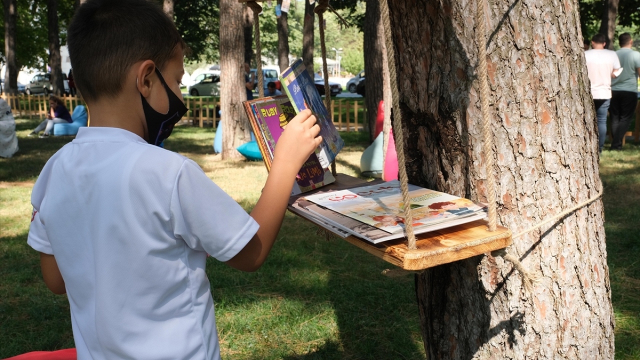 Bursa'da kitapseverler parktaki 'açık hava kütüphanesi'nde buluşuyor