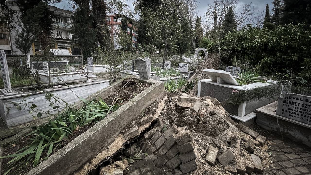 Çok sayıda mezar hasar görürken bazı mezarlar da yerlerinden çıktı.