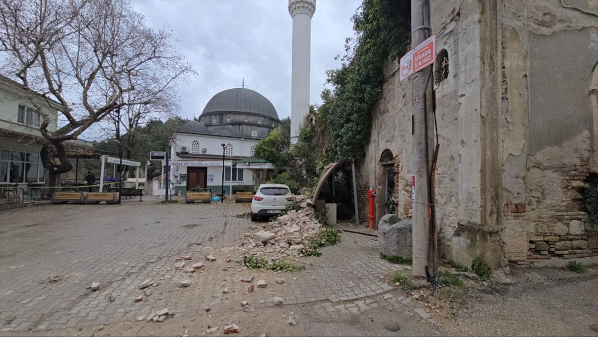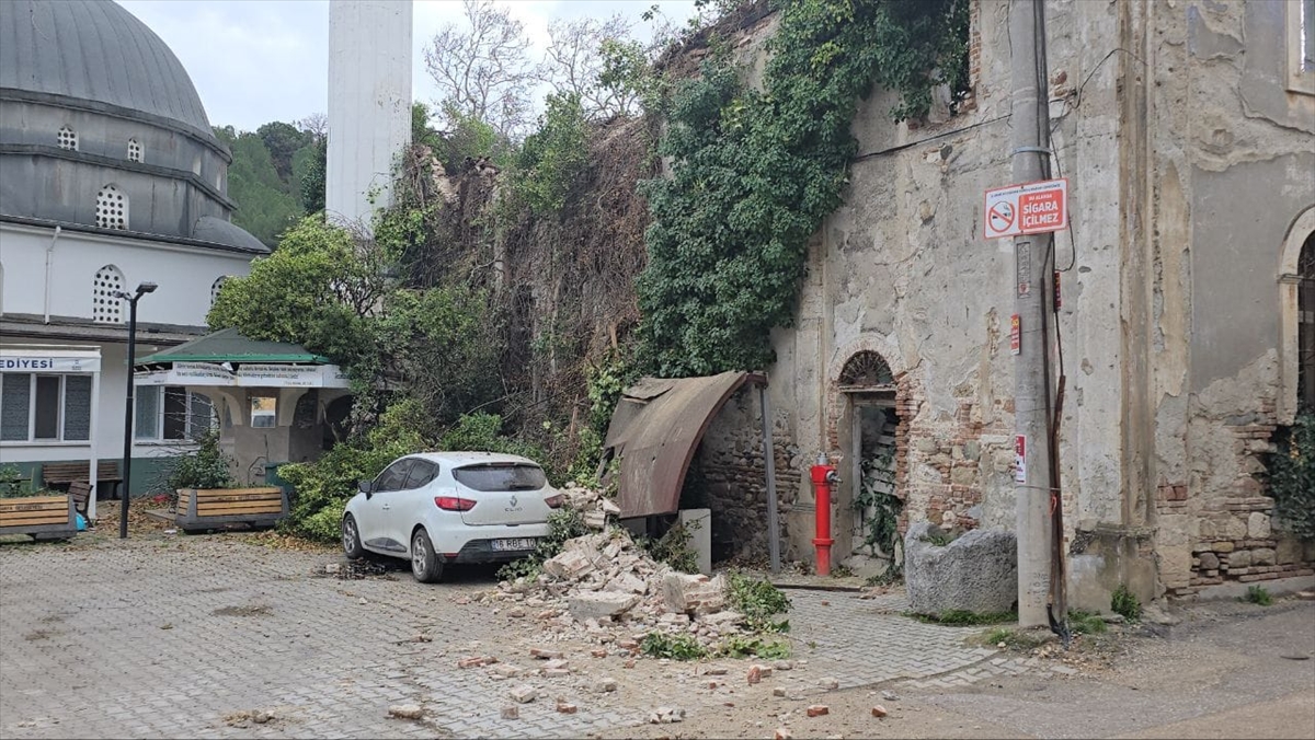 Mudanya Aydınpınar Mahallesi`nde de Apostoloi Kilisesi`nin duvarının bir kısmı yıkıldı.