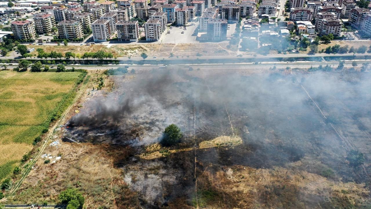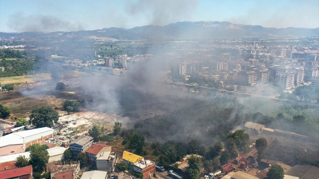Bursa'da otluk alanda çıkan yangına müdahale ediliyor