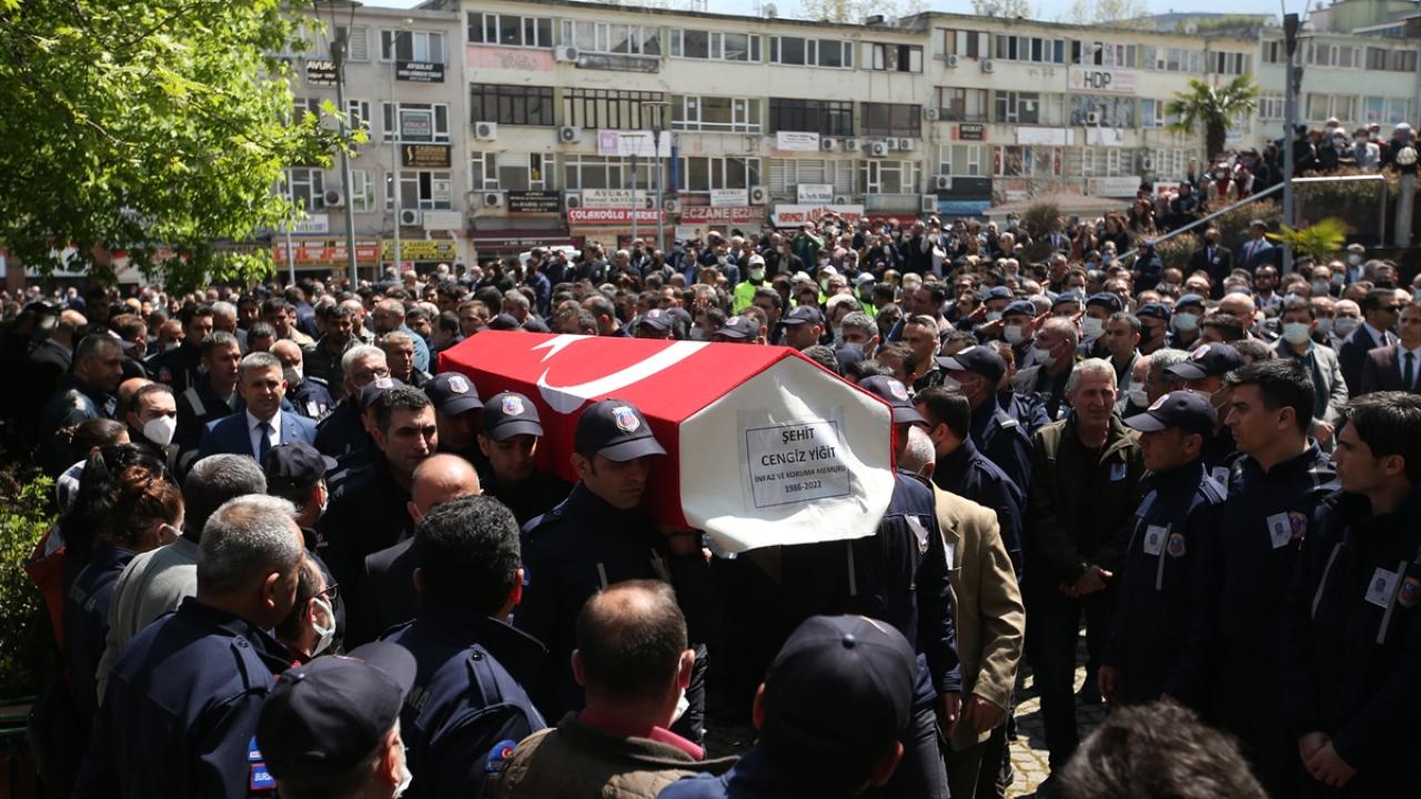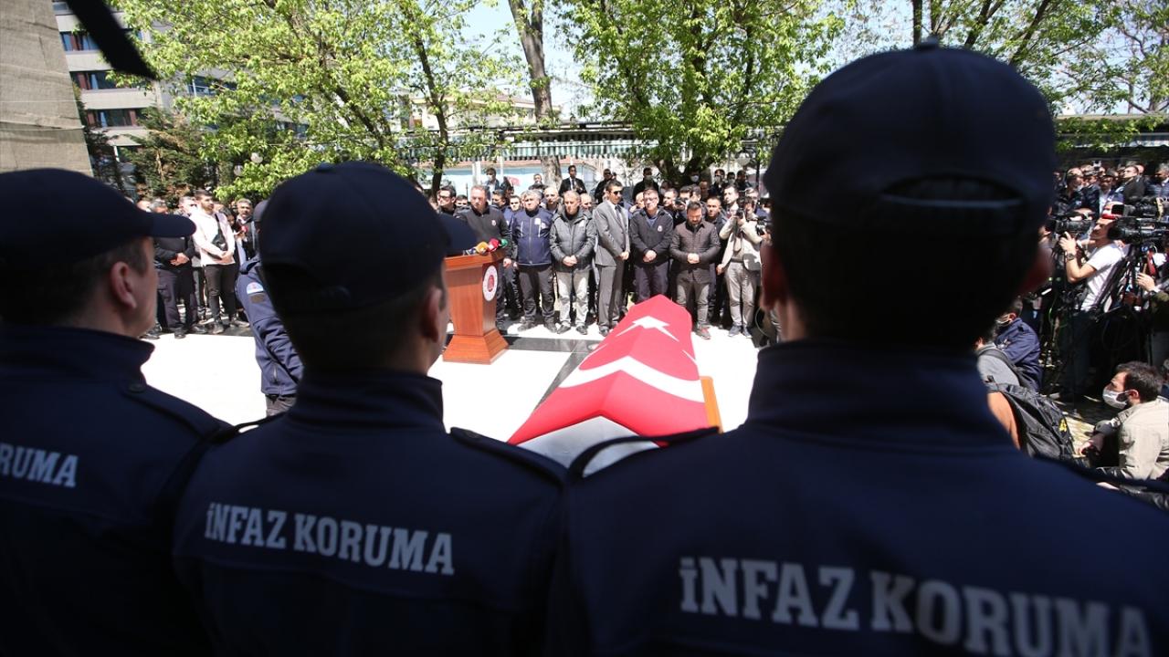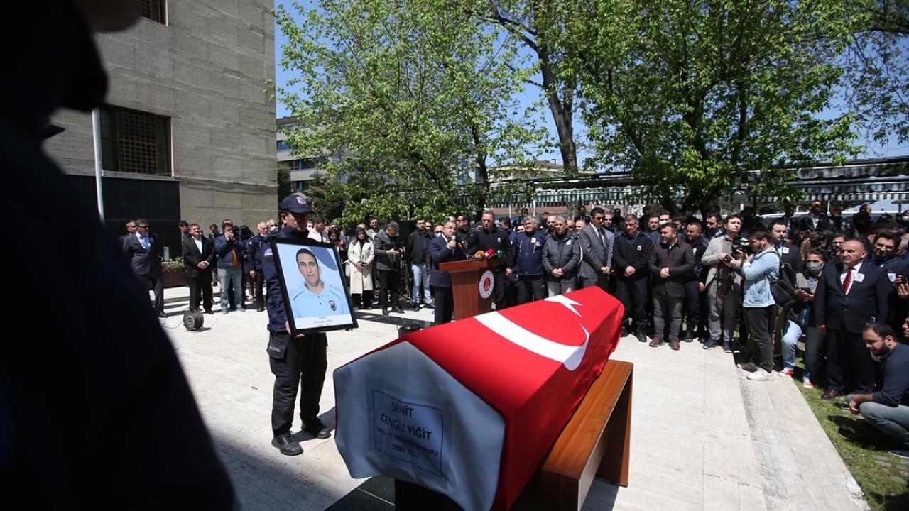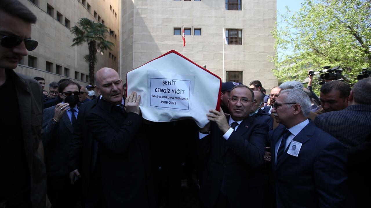 İnfaz koruma memurlarını taşıyan servis otobüsüne yönelik terör saldırısında şehit olan infaz koruma memuru Cengiz Yiğit için Bursa Adalet Sarayı bahçesinde tören düzenlendi.