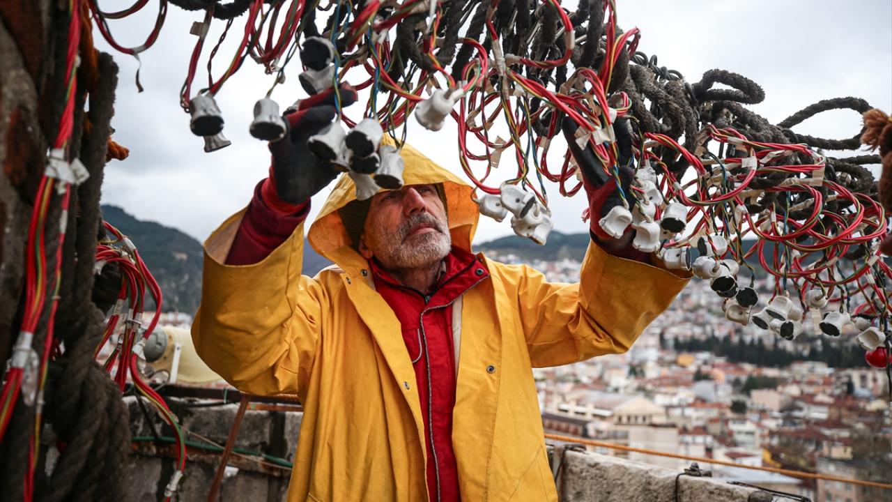 Mahyayı değiştiren ekibin başında yer alan Kahraman Yıldız ise "Bursa Ulu Camisi`ne ikinci yazımızı da astık, 3 kişilik ekiple çalıştık." diye konuştu.