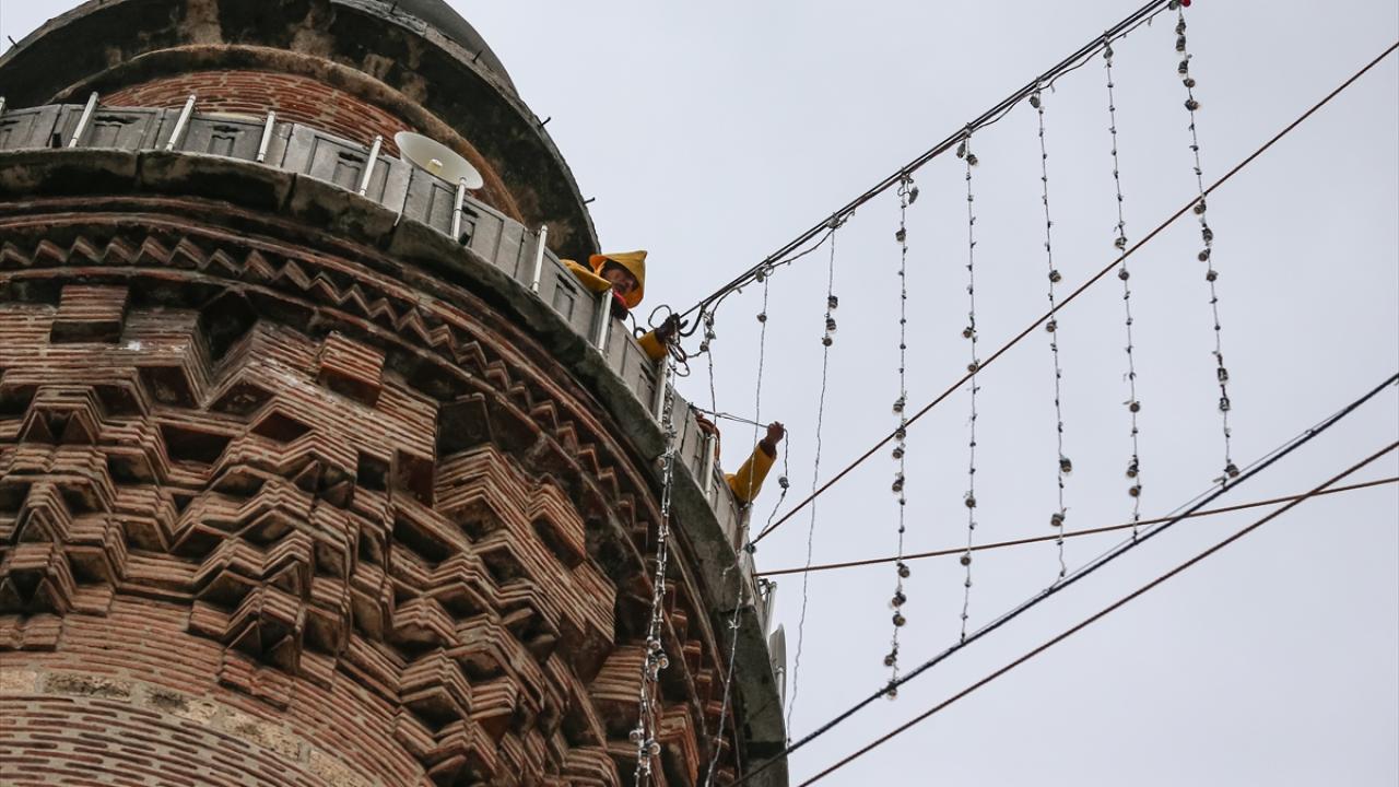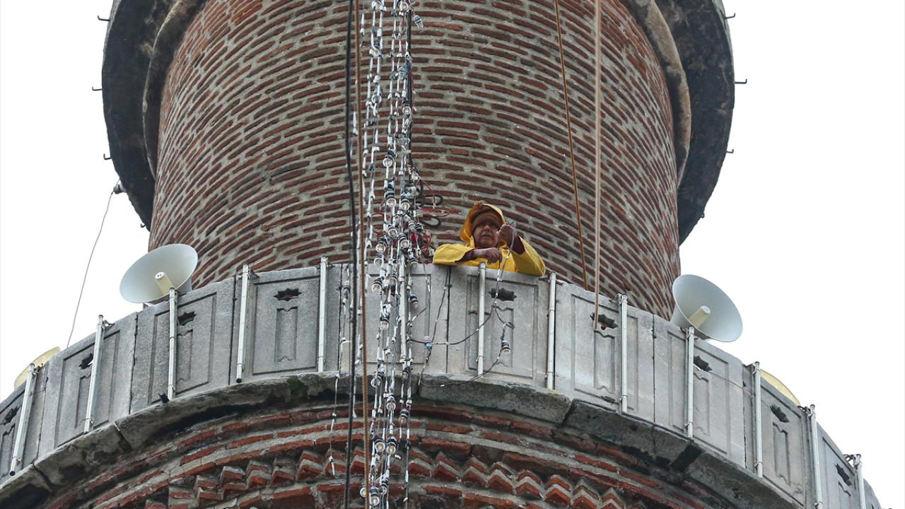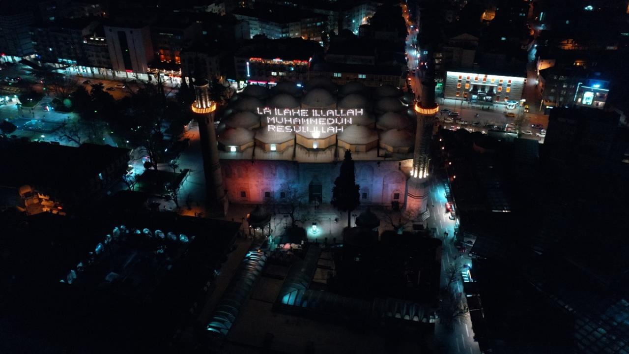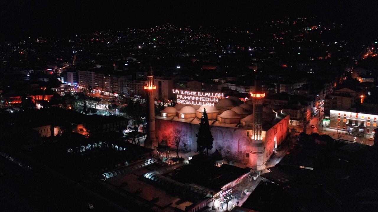 Ulu Cami`nin 70 metre mesafesindeki iki minareye asılan mahya, ramazanın ikinci yarısında Kelime-i Tevhid mahyasıyla değiştirildi.