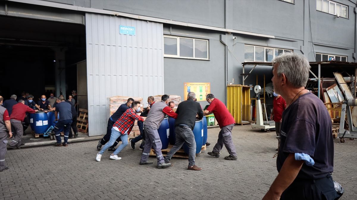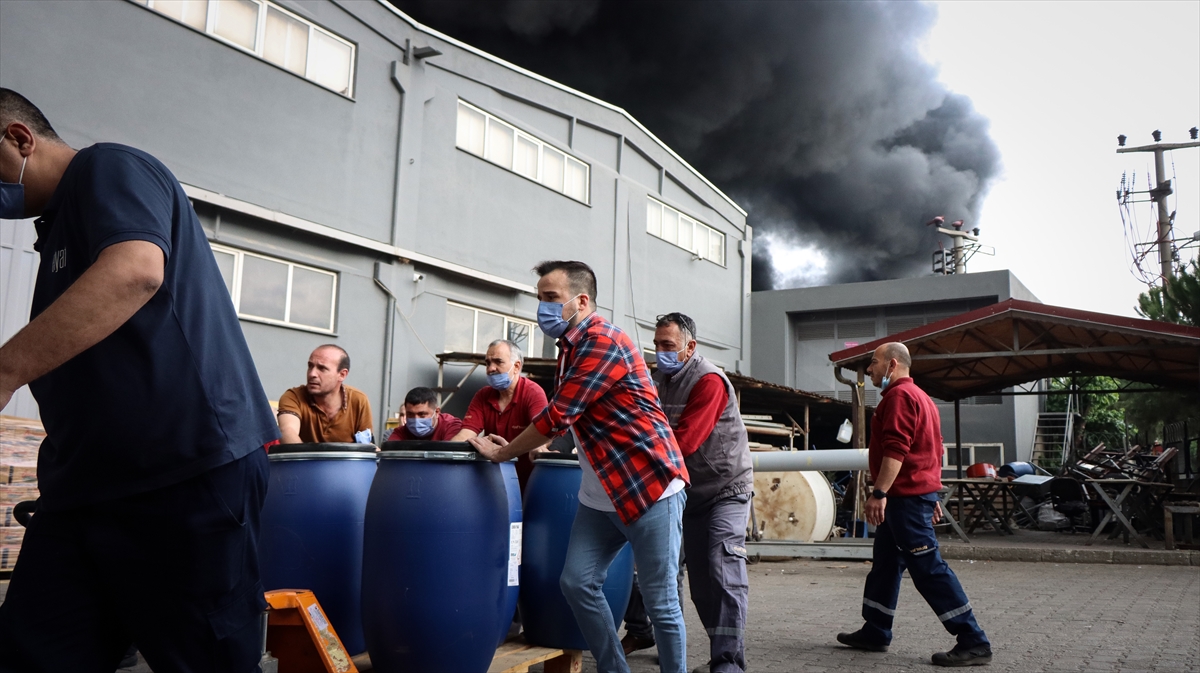 Bu arada, yangının çıktığı fabrikanın yanı sıra yakın tesislerdeki ham maddeler alevlerin yayılma riskine karşı işçiler tarafından taşındı.