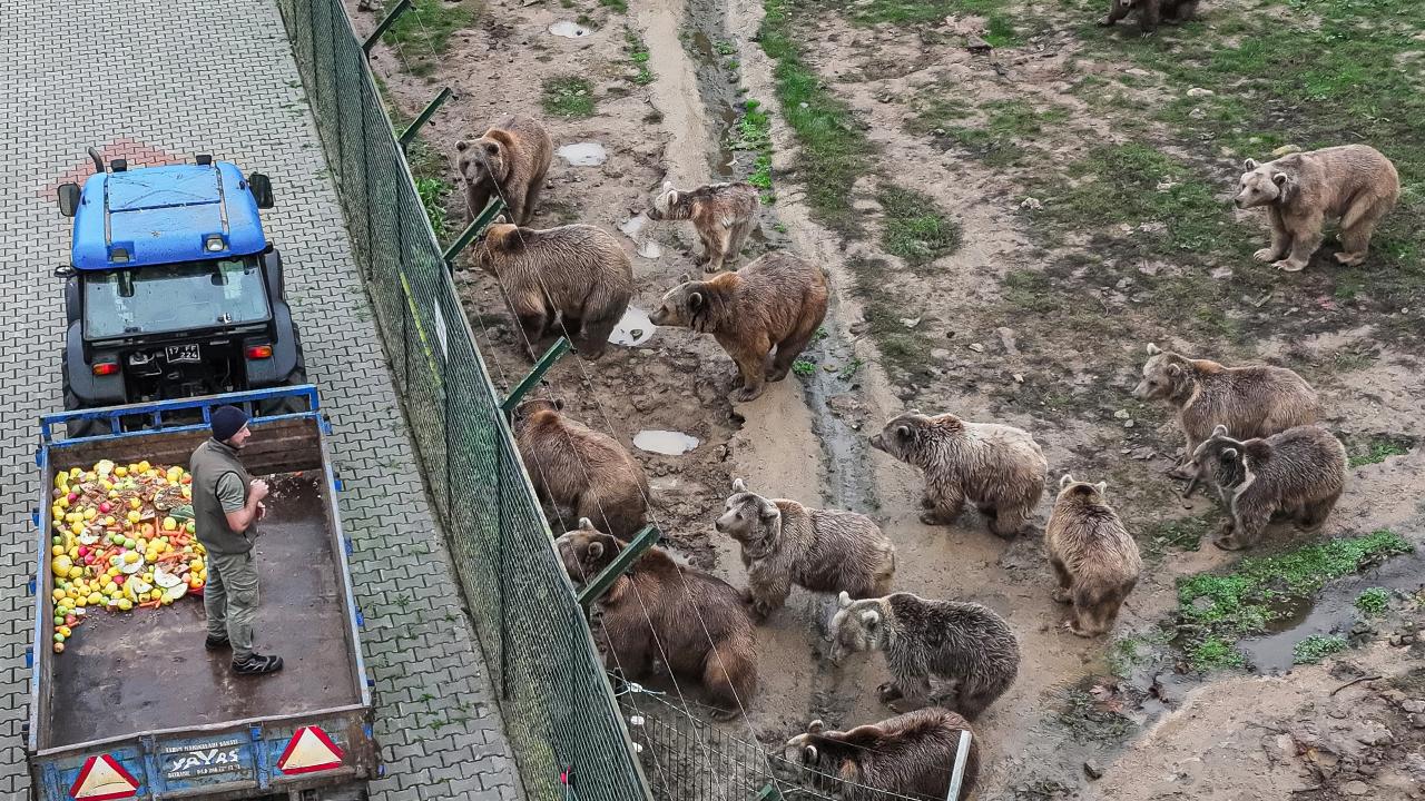 Bursa'nın Karacabey ilçesindeki ayı barınağının sakinleri, zor kış koşullarına dayanabilmeleri için metabolizmalarının yavaşladığı, vücut sıcaklıklarının azaldığı dönem öncesi günde yarım tona yakın yiyecekle besleniyor.