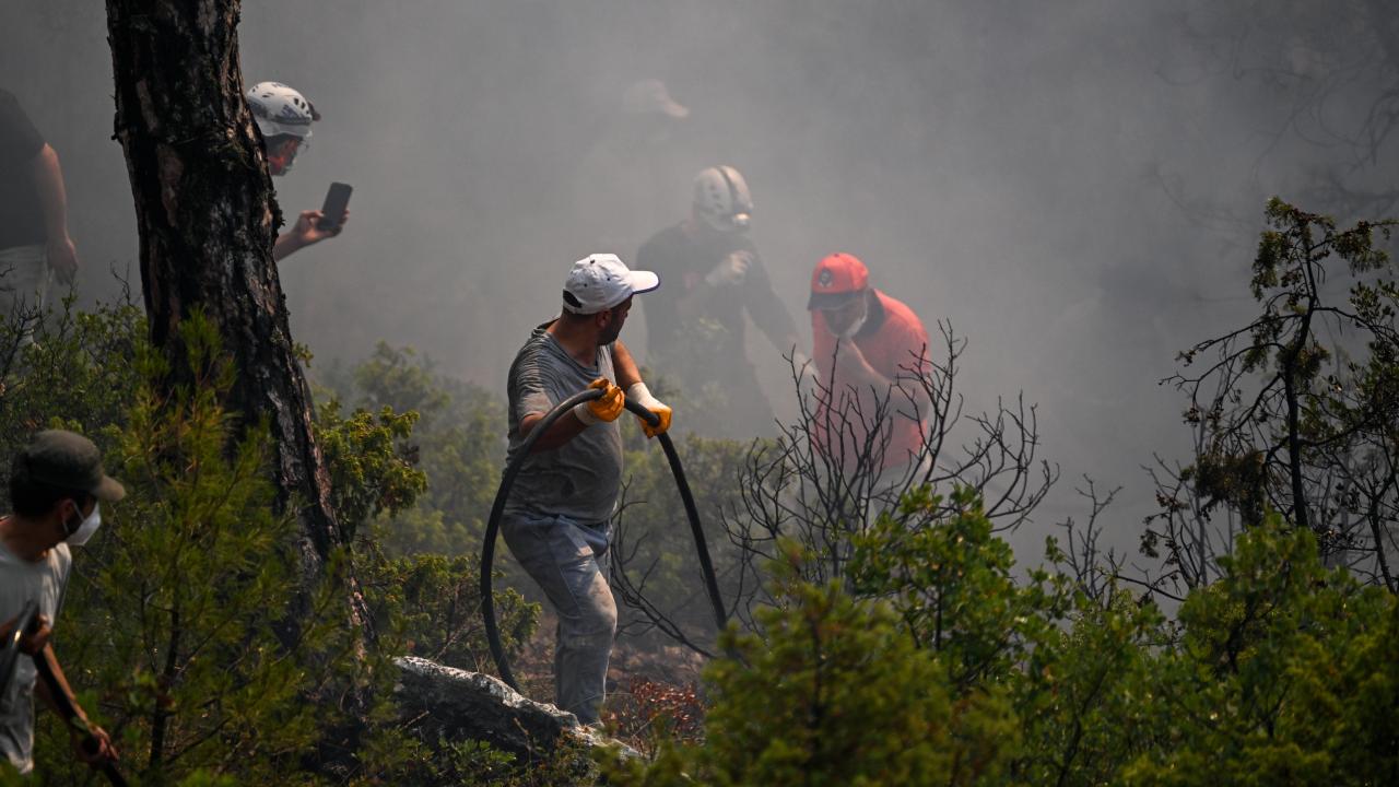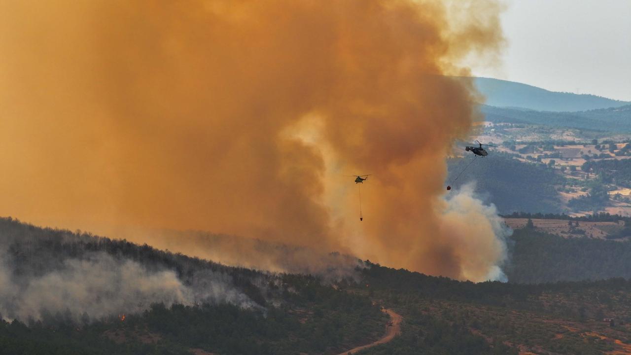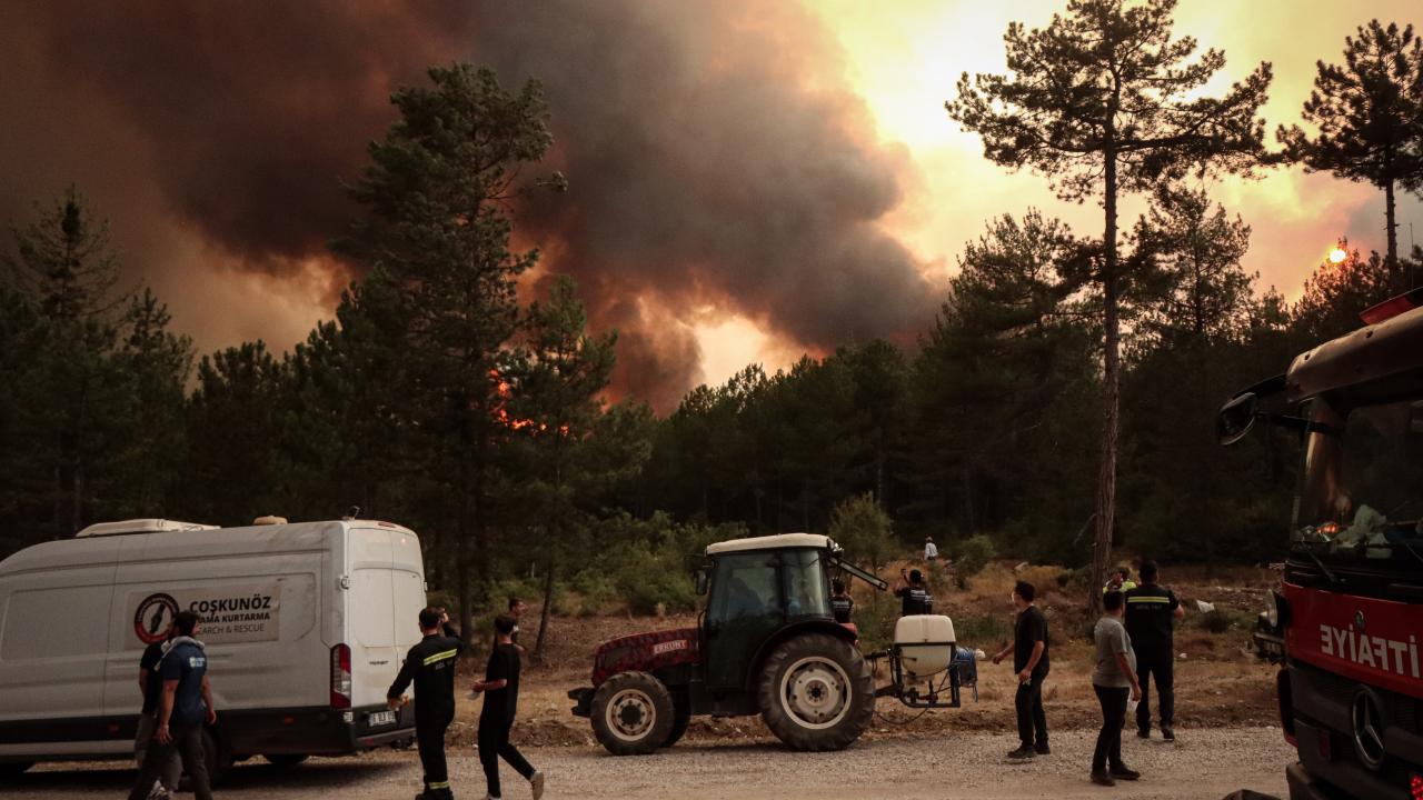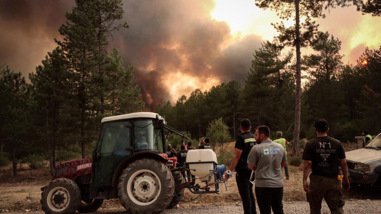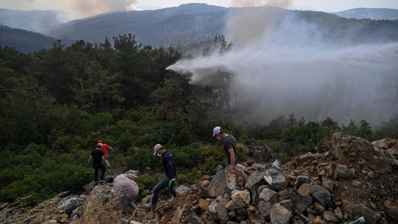 Ekiplerce havadan ve karadan yürütülen yoğun müdahaleyle yangının ilerleyişi durdurulmaya çalışılıyor. Bölge halkı da traktörlerinin arkalarına bağladıkları su dolu tankerlerle ekiplere destek veriyor.