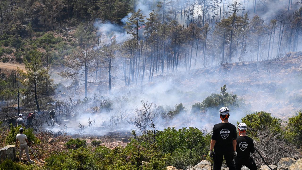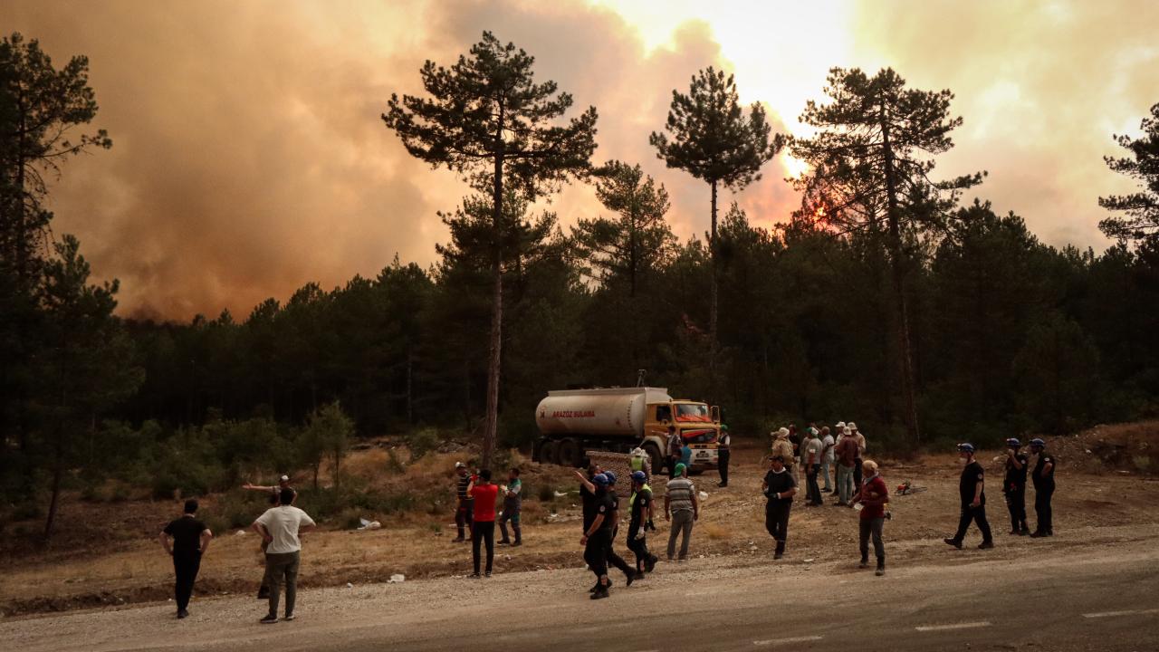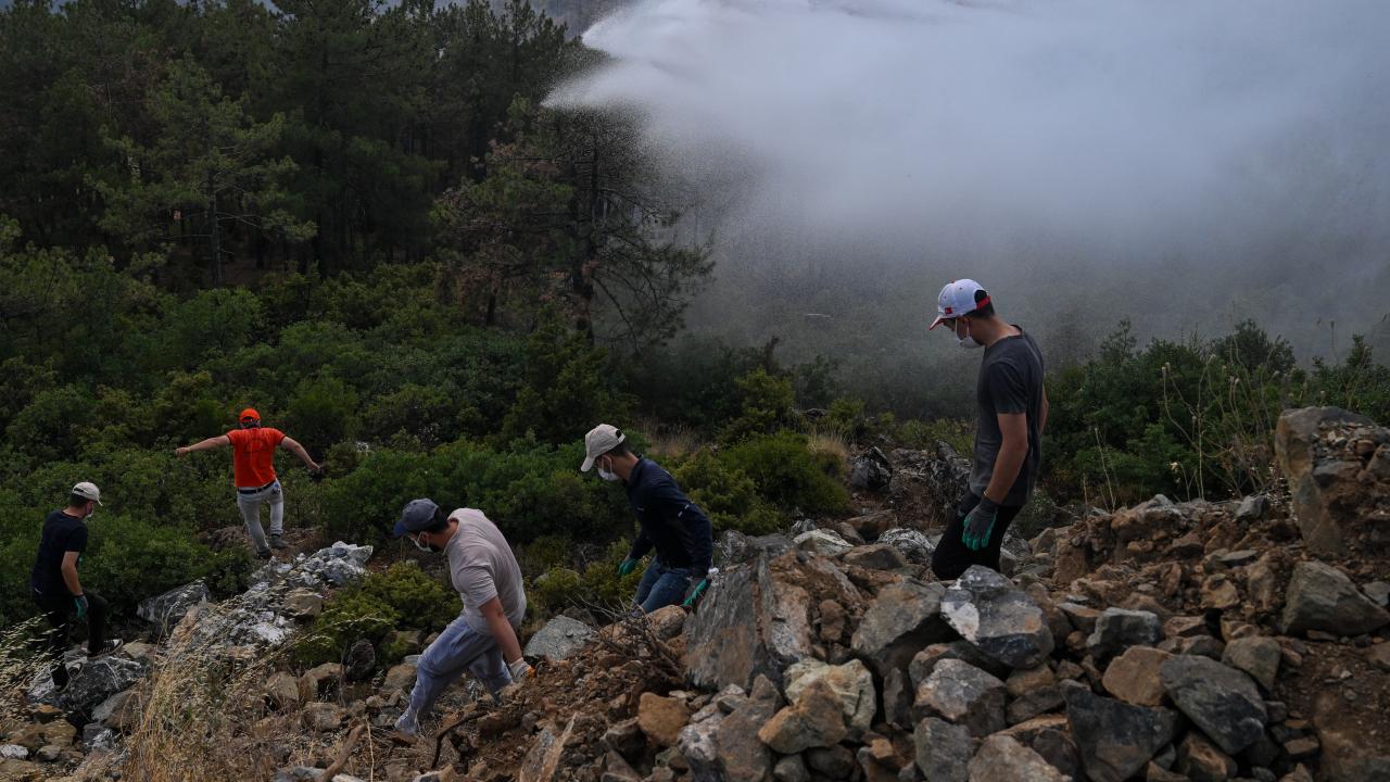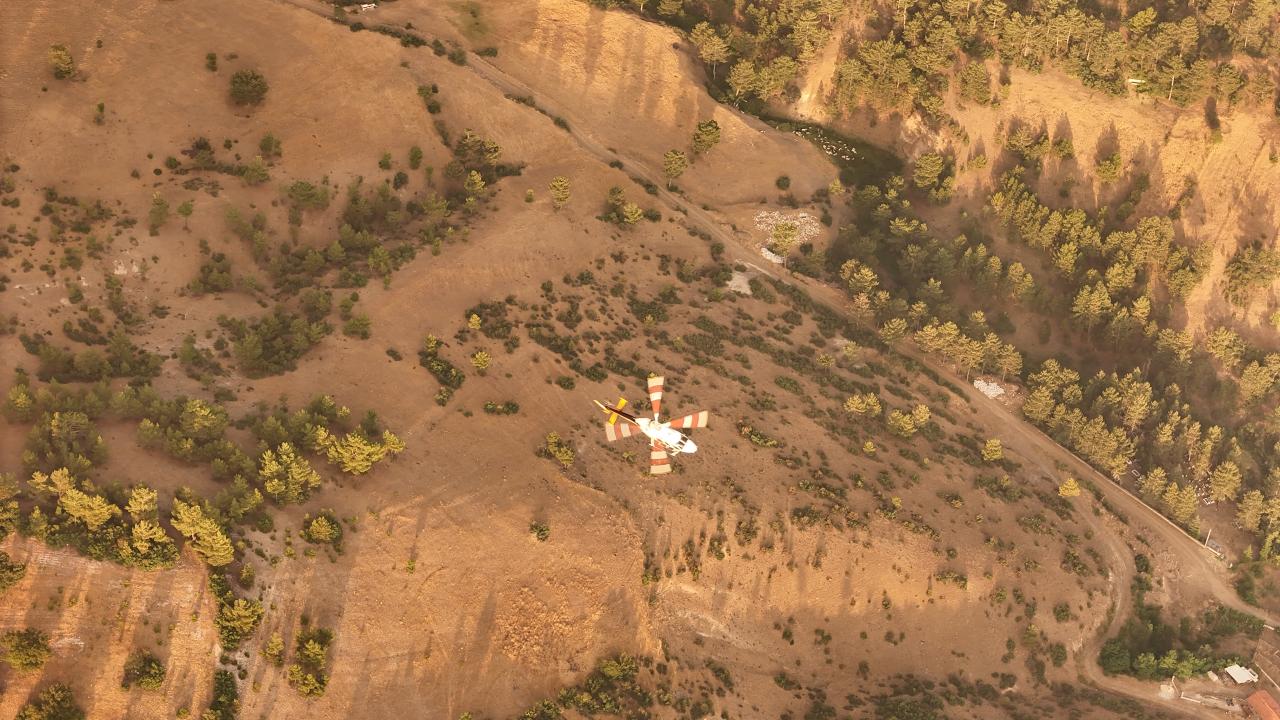 Ekiplerce havadan ve karadan yürütülen yoğun müdahaleyle yangının ilerleyişi durdurulmaya çalışılıyor. Bölge halkı da traktörlerinin arkalarına bağladıkları su dolu tankerlerle ekiplere destek veriyor.