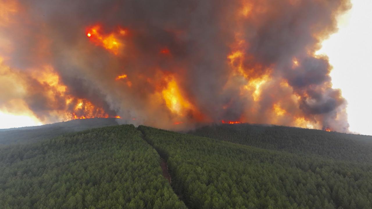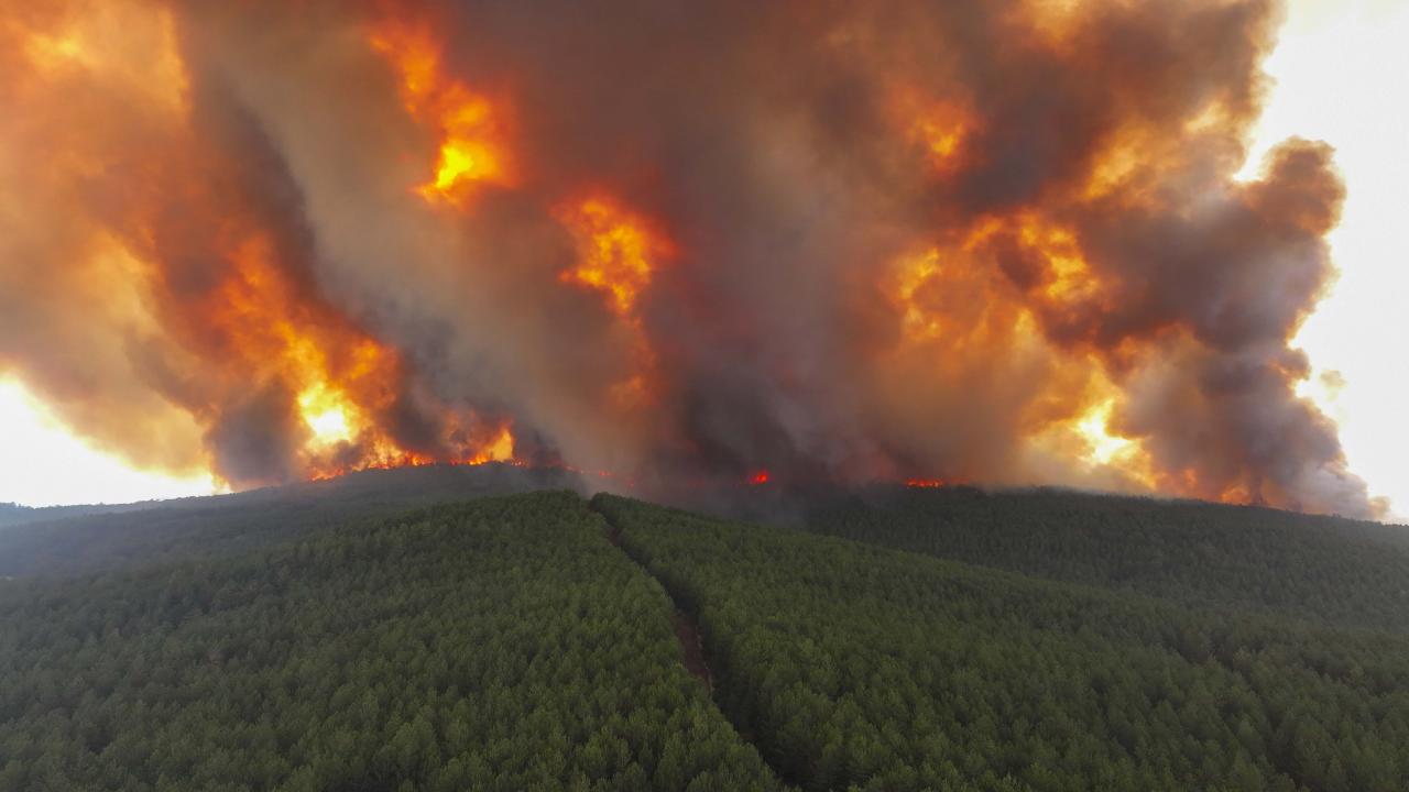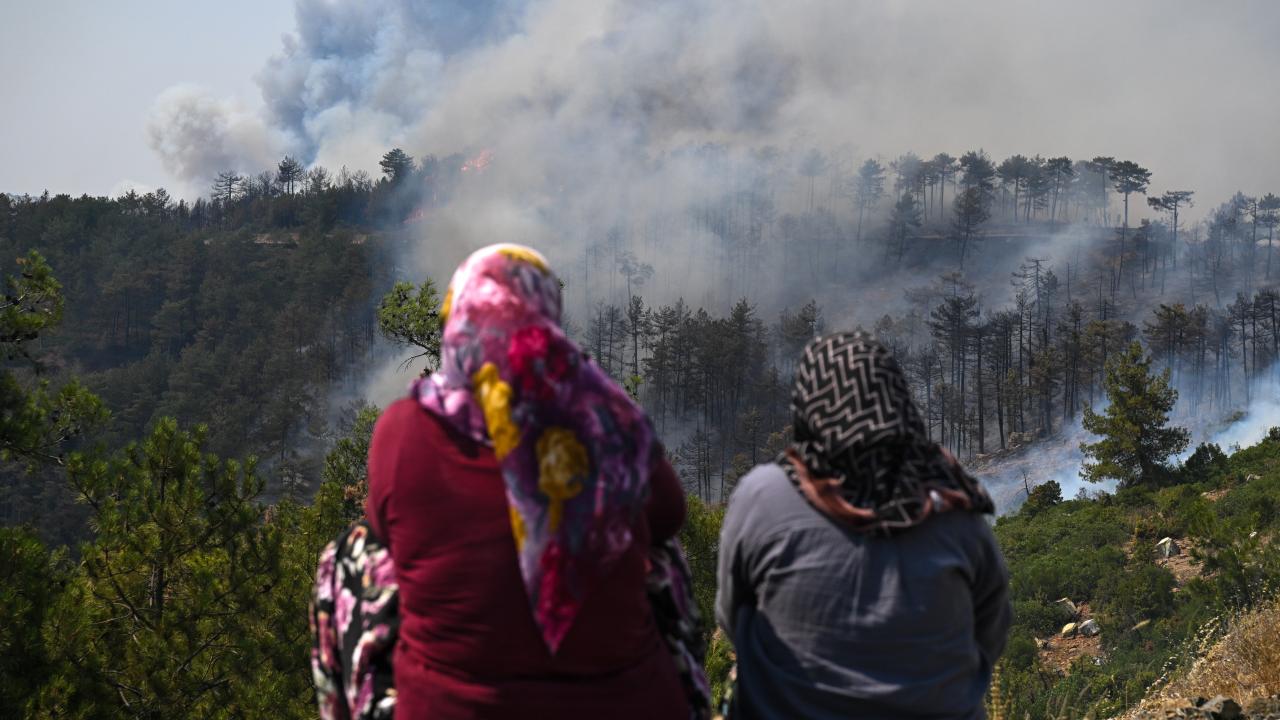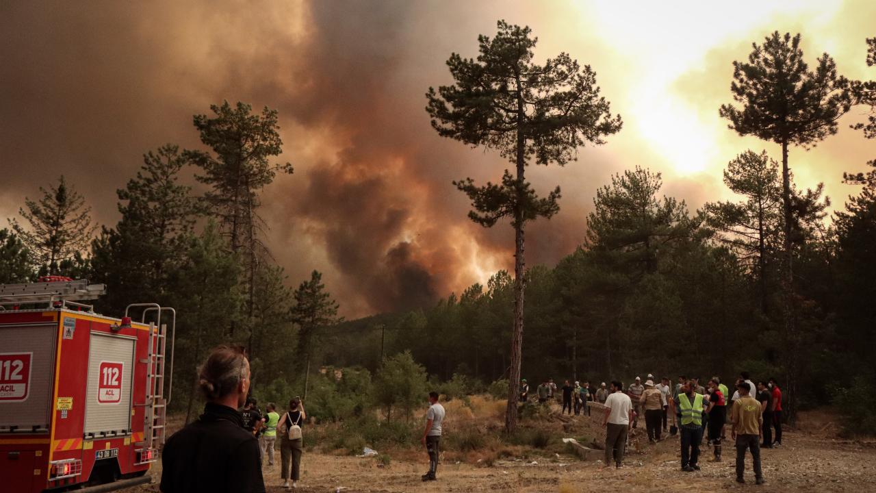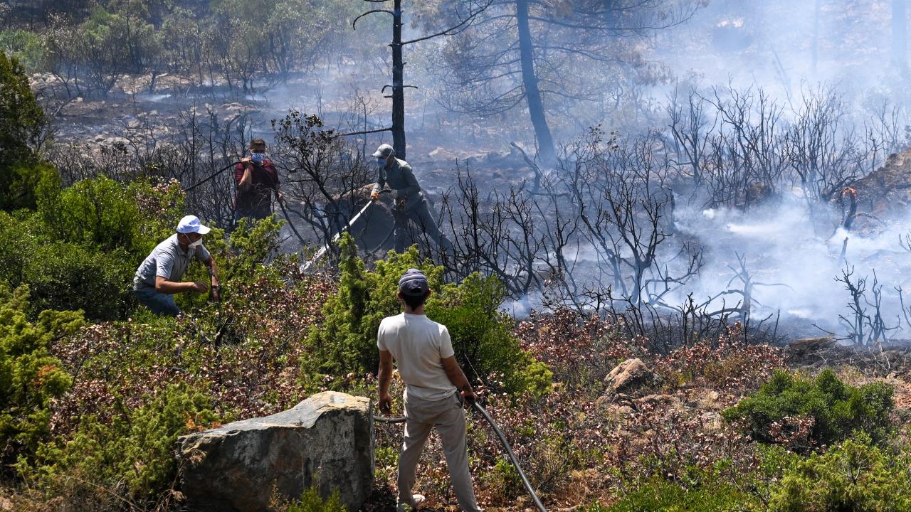 Ekiplerce havadan ve karadan yürütülen yoğun müdahaleyle yangının ilerleyişi durdurulmaya çalışılıyor. Bölge halkı da traktörlerinin arkalarına bağladıkları su dolu tankerlerle ekiplere destek veriyor.
