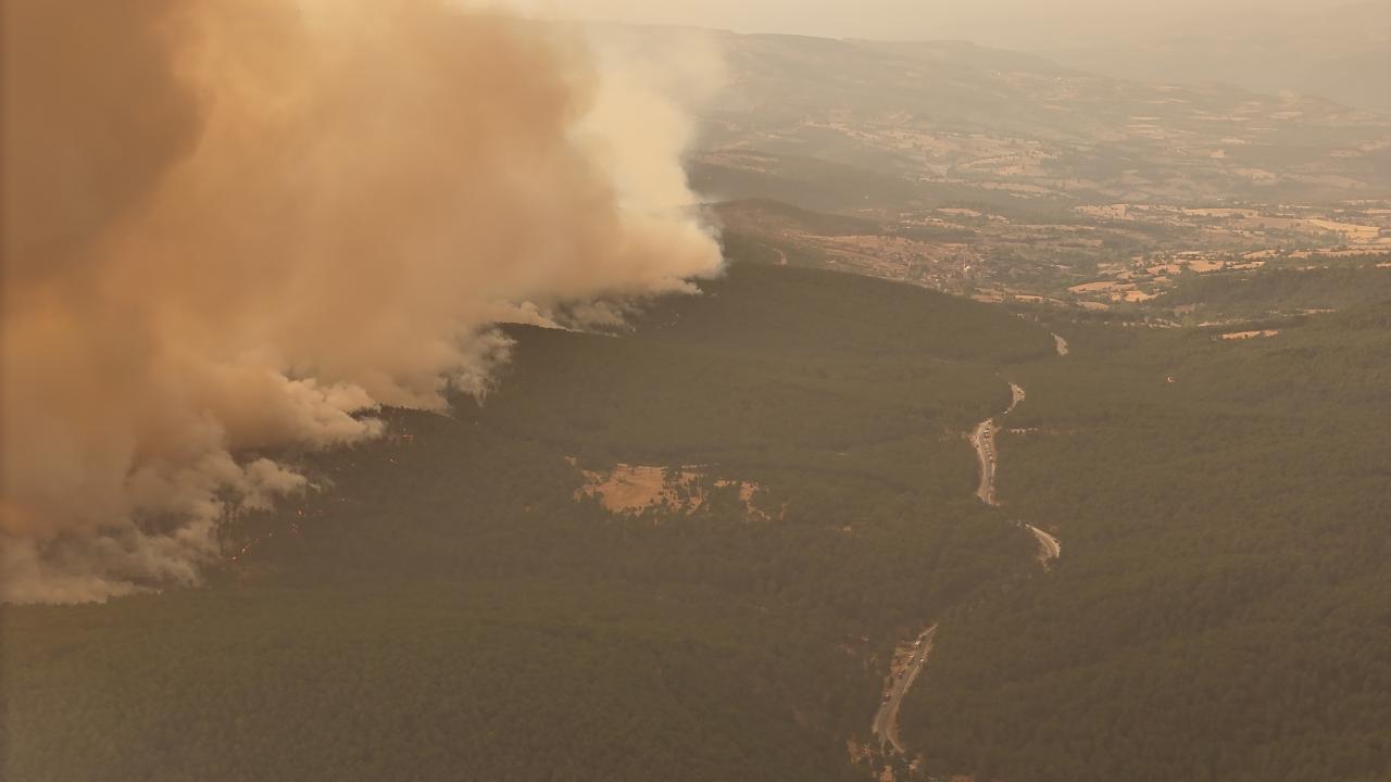 Yangın nedeniyle Orhaneli-Harmancık kara yolu da geçici olarak trafiğe kapatıldı.