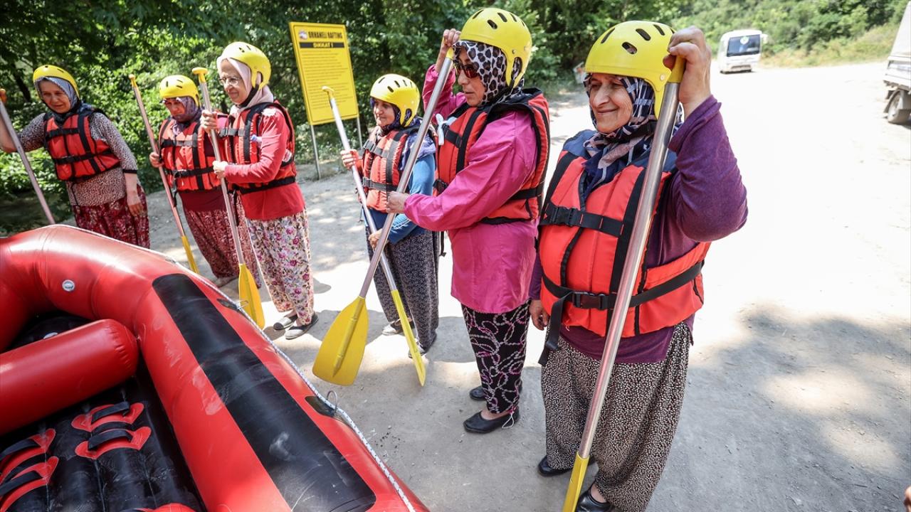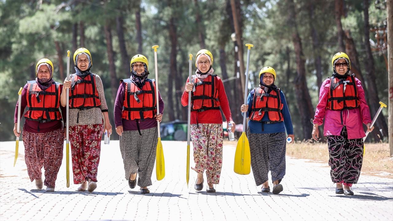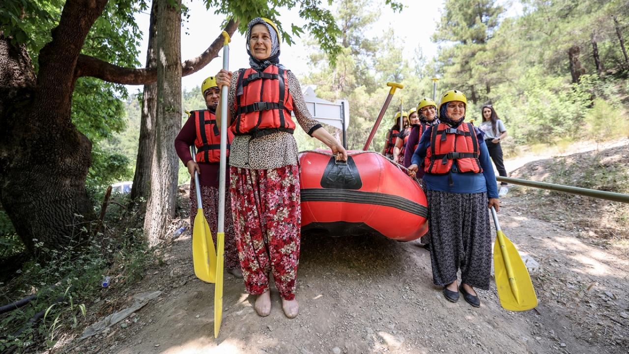Kendileri için düzenlenen özel programda yörede giyilen şalvar ve lastik ayakkabılarıyla rafting botuna binen köylü kadınlar, hayatlarında ilk kez rafting yaptı. Şarkılar eşliğinde kürek çekerek parkuru tamamlayan kadınlar, unutulmaz anlar yaşadı.