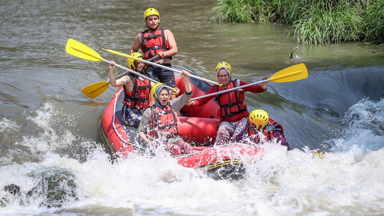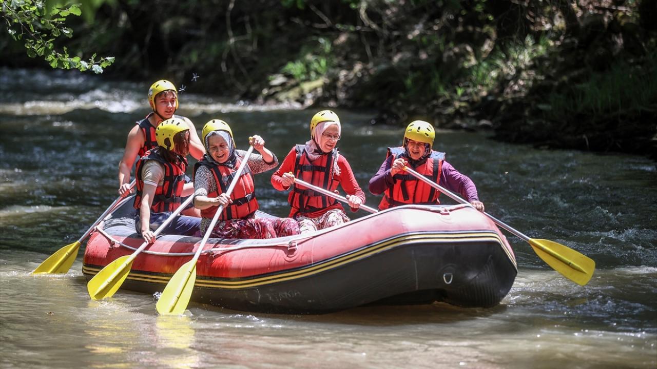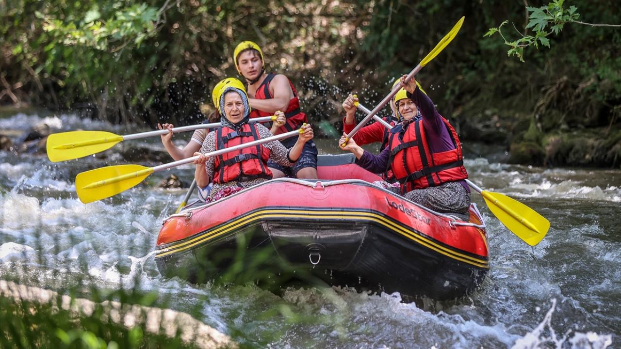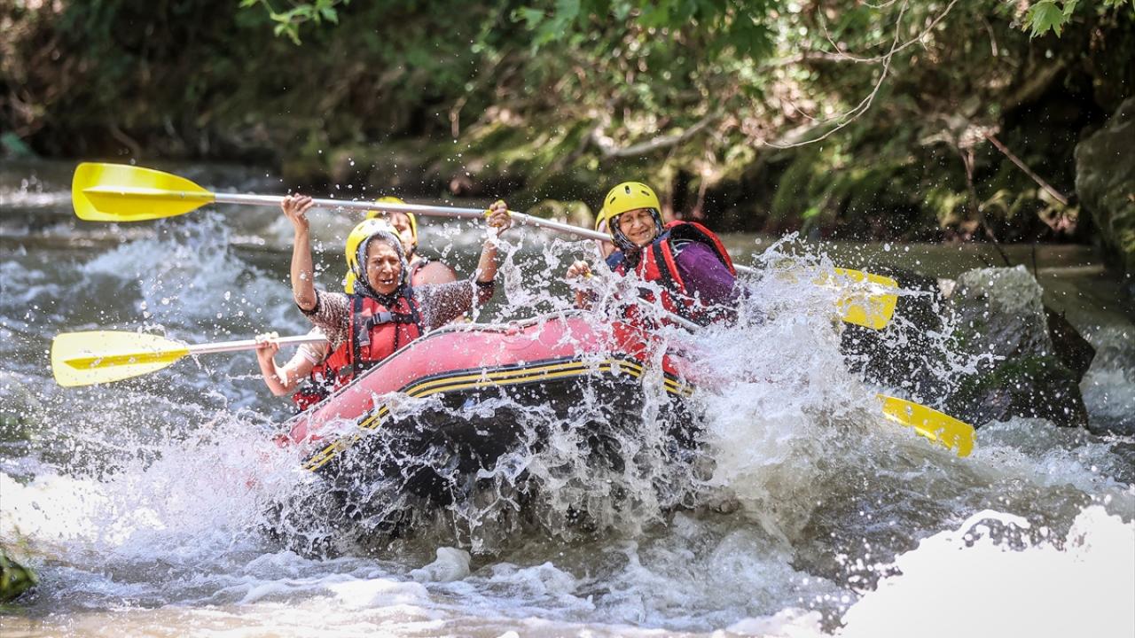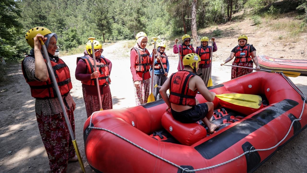 Yaklaşık 10 kilometrelik parkurun bulunduğu derede rafting yapanları gören yöre kadınları da daha önce hep izledikleri bu sporun heyecanını yaşamak için Orhaneli Rafting Tesisi yetkilileriyle iletişime geçti.