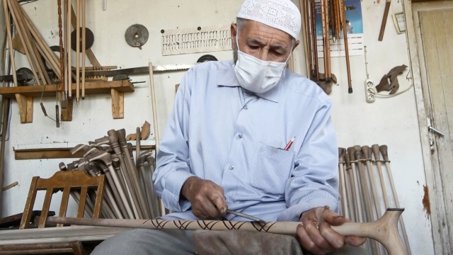 80 Yaşındaki Abdurrahman Gökbulak, 50 Yıldır Ahlat bastonu yapıyor