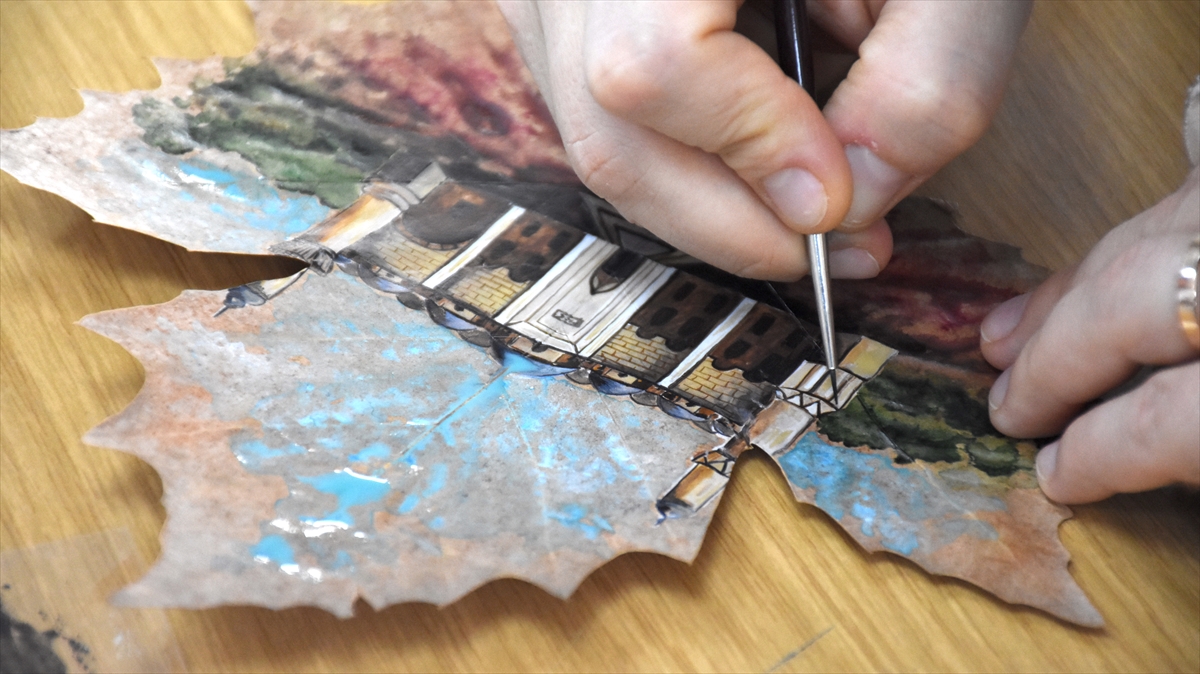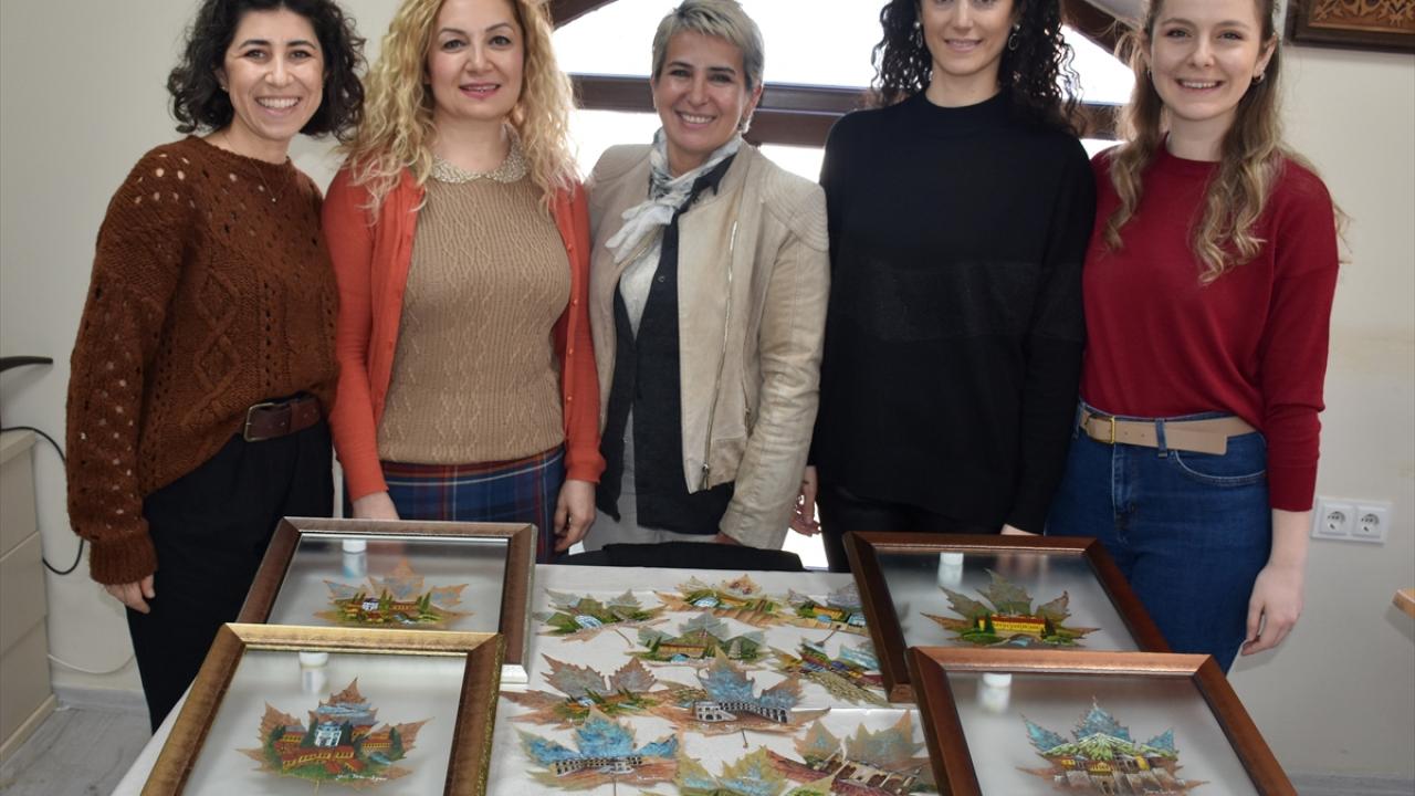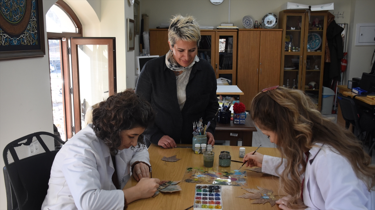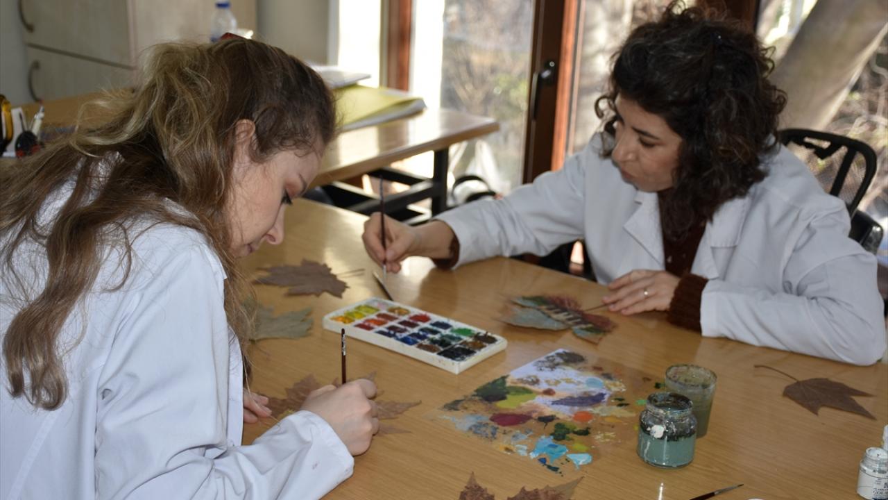 Enstitüdeki 5 usta öğretici ve öğretmen tarafından özenle seçilen yapraklar, aylarca kurutulup sulu boya ile birer sanat eserine dönüştürülerek satışa sunuluyor.