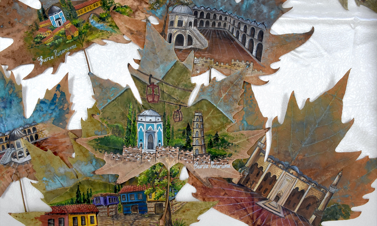Çınar yaprağındaki eserlerin çok beğenildiğini belirten Önder, Bursa`nın değerlerini yaşattıkları için mutluluk duyduklarını dile getirdi.