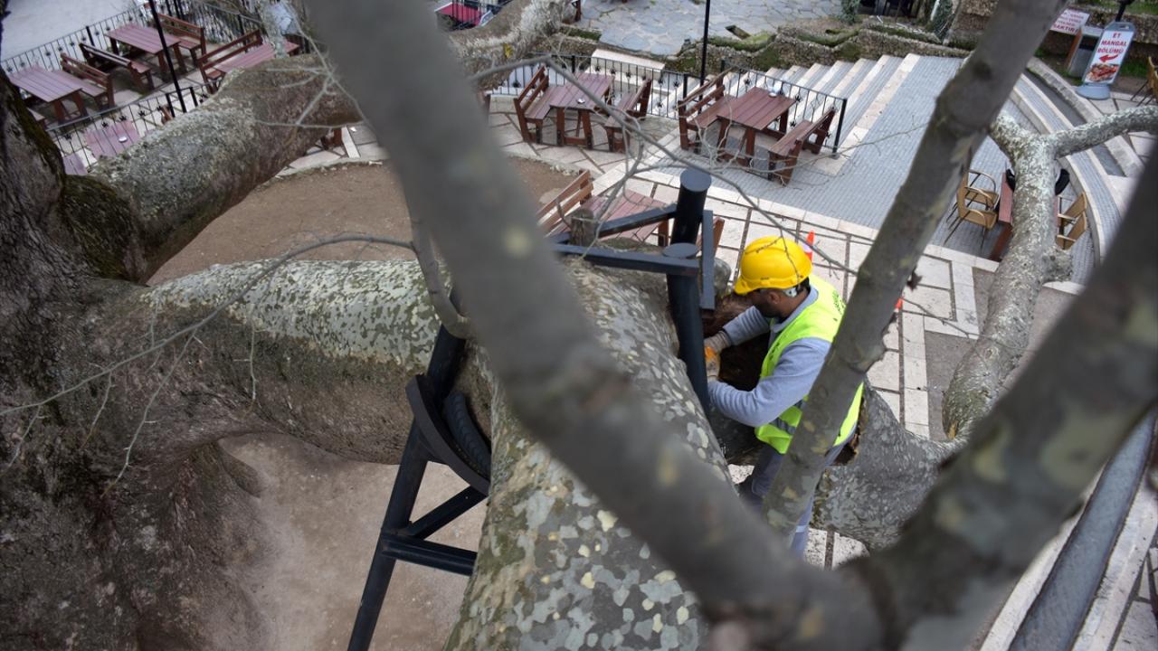 Bursa'nın simgesi "İnkaya Çınarı" özel bakımla korunuyor