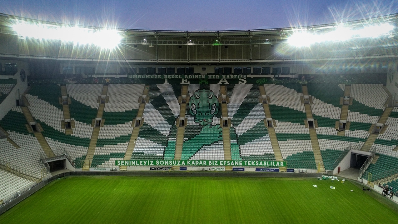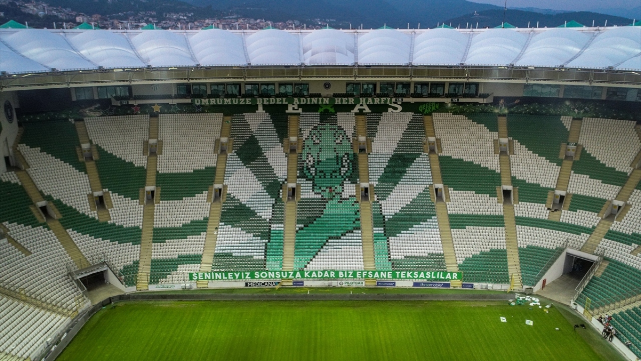 Bursaspor taraftarları, 12 bin 500 çöp poşetiyle kale arkası tribününde "Timsah" koreografisi yaptı.