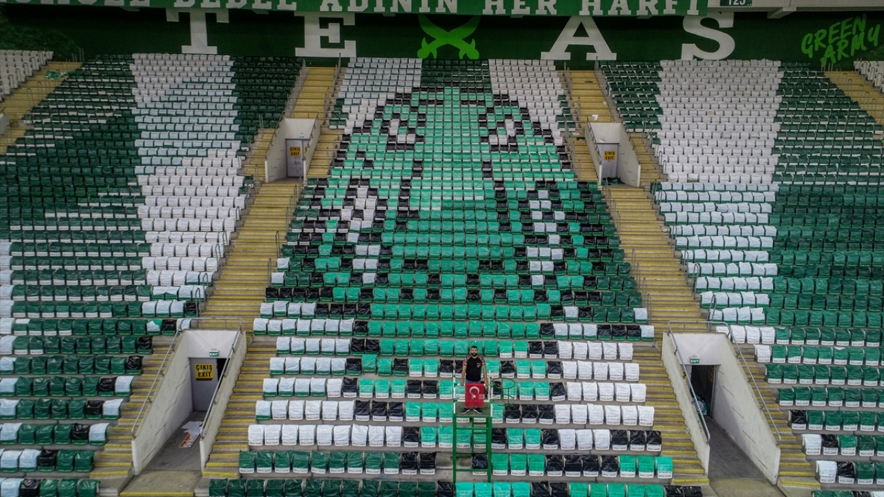 Bursasporlu taraftarların bu çalışması drone ile havadan görüntülendi.