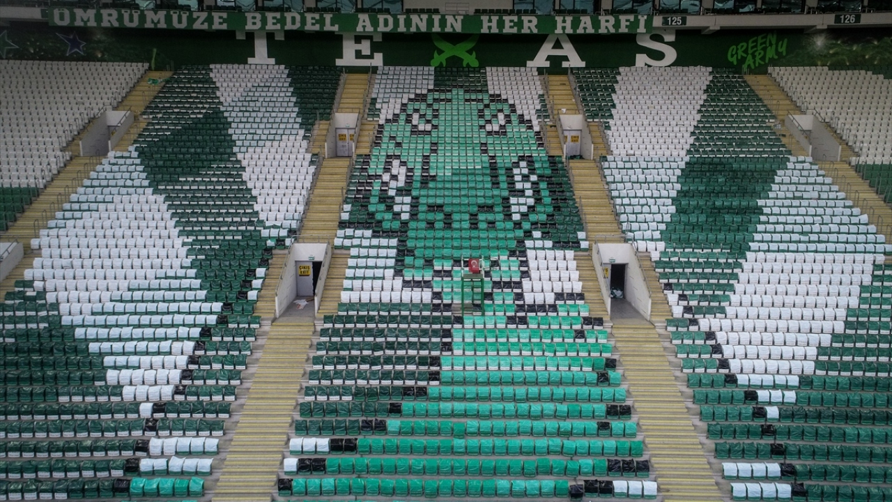 5 farklı renkte yaklaşık 12 bin 500 çöp poşetiyle Bursa Büyükşehir Belediye Stadı`nın güney kale arkasında bulunan "Teksas" tribününü donatan taraftar grubu, timsah figürlü koreografi oluşturdu.
