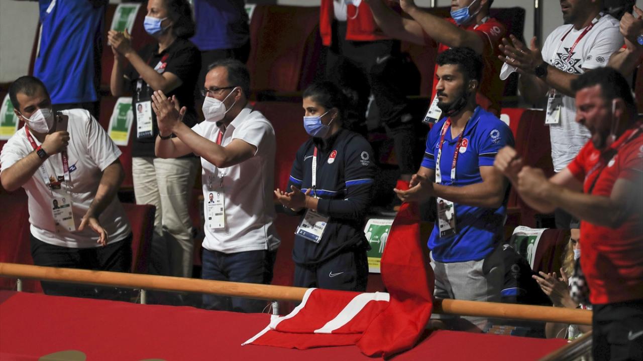 Kasapoğlu, Buse Naz`ın maçını tribünden diğer milli boksörlerle takip etti.
