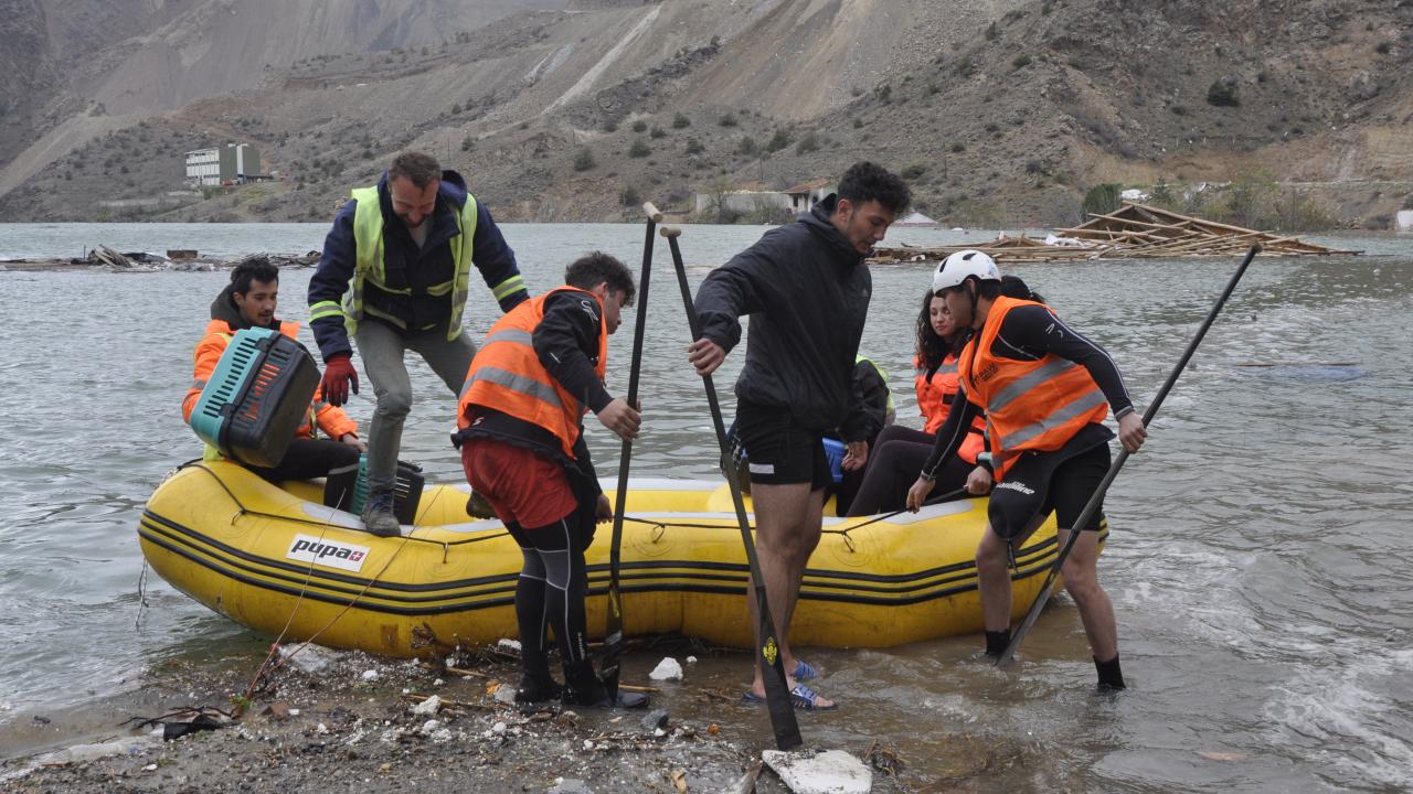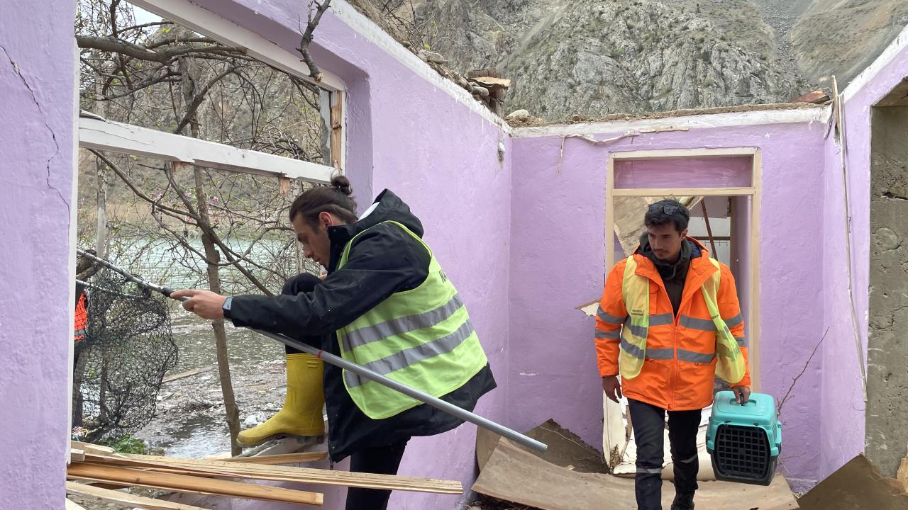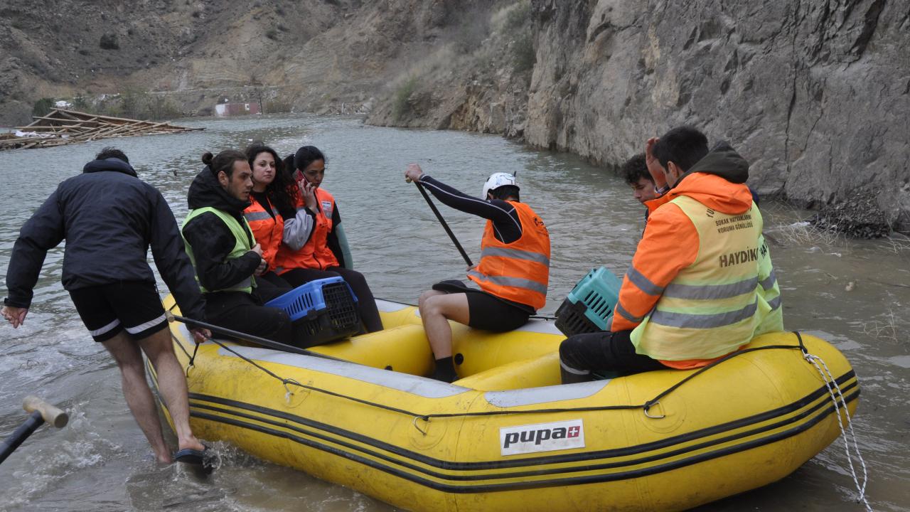 Hayvanları, Doğayı, İnsanları Koruma ve Yaşatma Derneği koordinesinde farklı illerden bölgeye gelen gönüllüler ve Yusufeli Belediyesi ekipleri, Yusufeli`nde baraj suları altında kalan köy ve ilçe merkezindeki sahipsiz hayvanların güvenli bölgelere taşınması için çalışma yürütüyor.