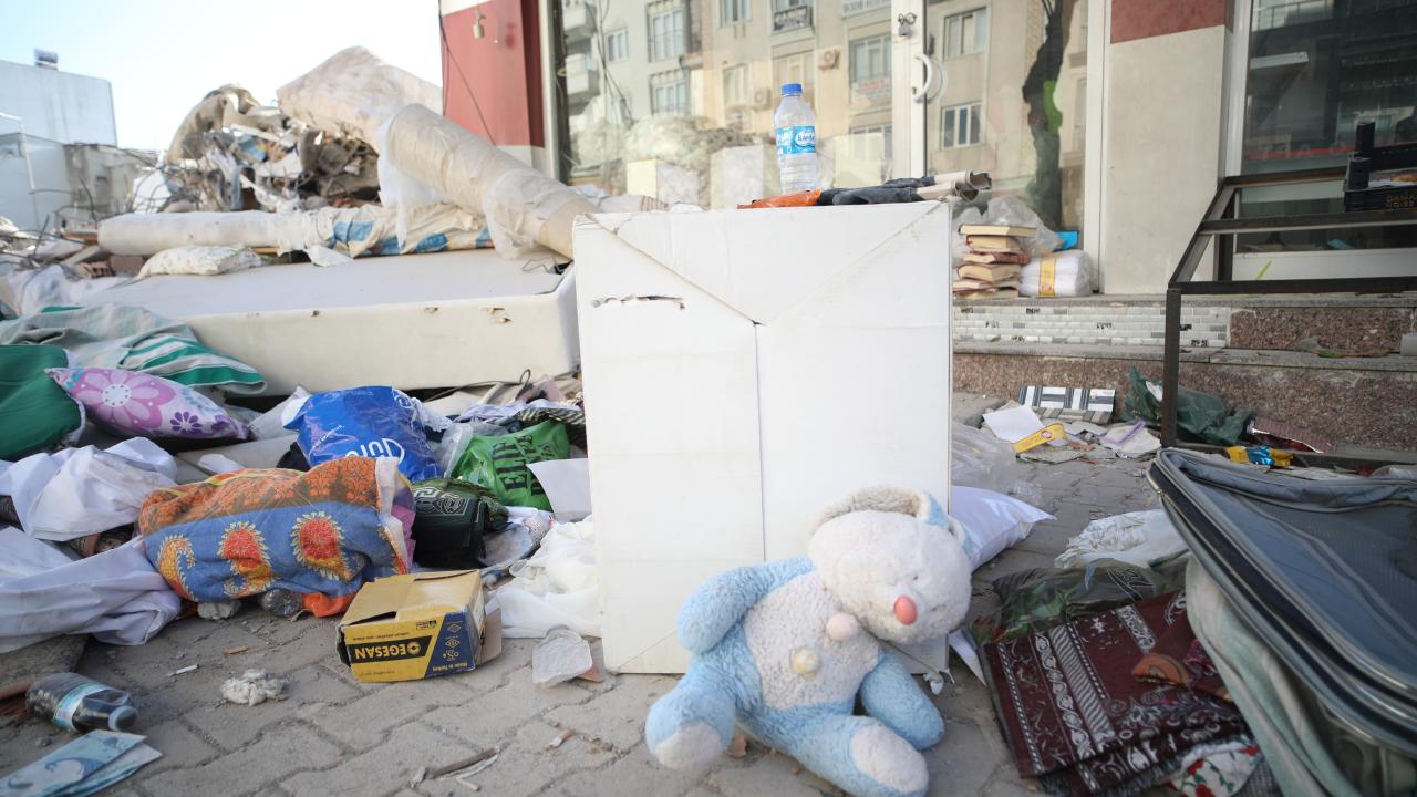 Enkazların yanında biriken kişisel eşyalar görenleri derinden etkilerken en sarsıcı görüntüler ise çocukların oyuncakları oluyor.