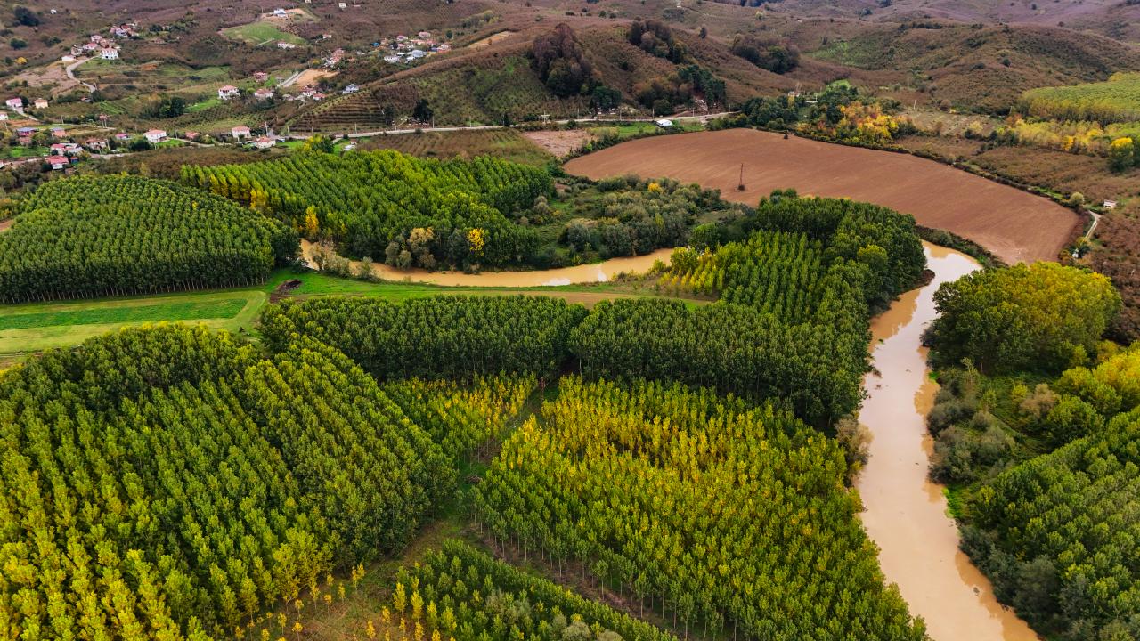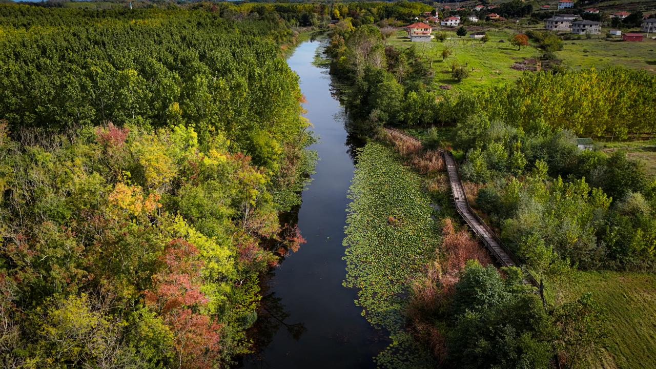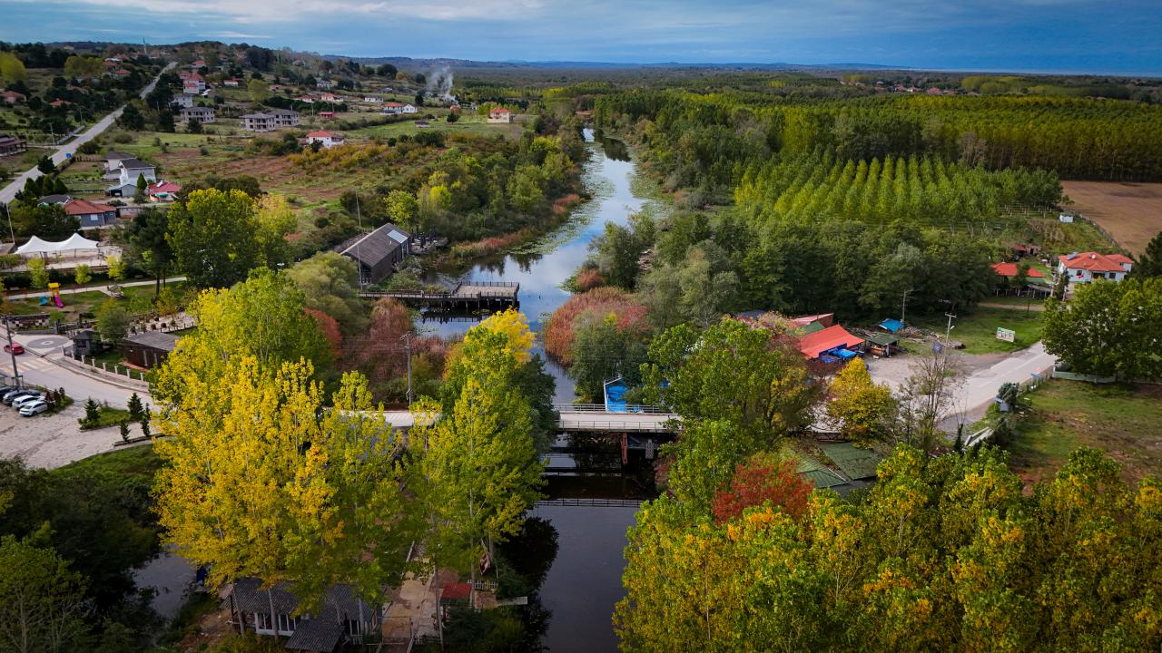 Düzce'de doğup Sakarya üzerinden Karadeniz'e dökülen Büyük Melen Çayı'nın havzasında sonbaharın renkleri ahenkli görüntüler oluşturuyor. Havza boyunca sarı, kızıl ve kahverenginin tonlarına bürünen kavak ve söğütler, güz mevsiminin bölgedeki etkisini gösteriyor. Özellikle çayın kıyı kesimlerinde yer alan kavakların sararan yaprakları mevsimin rengini yansıtıyor.