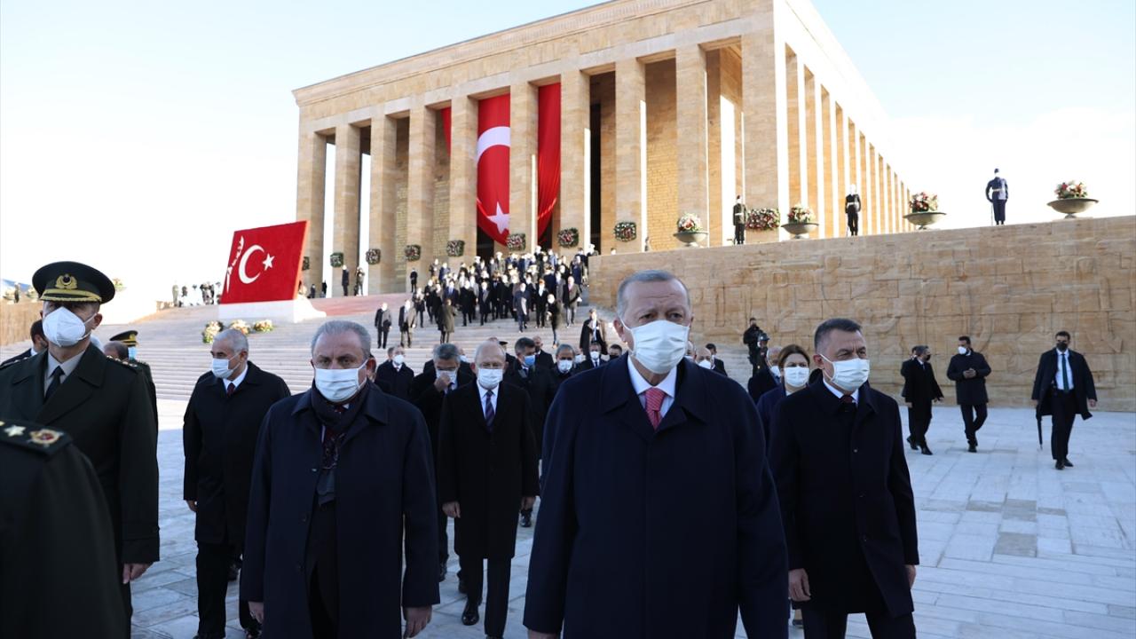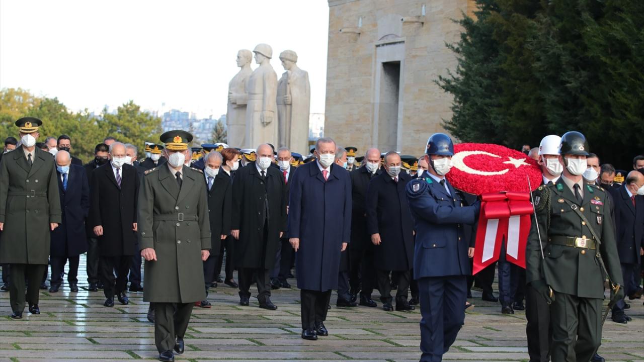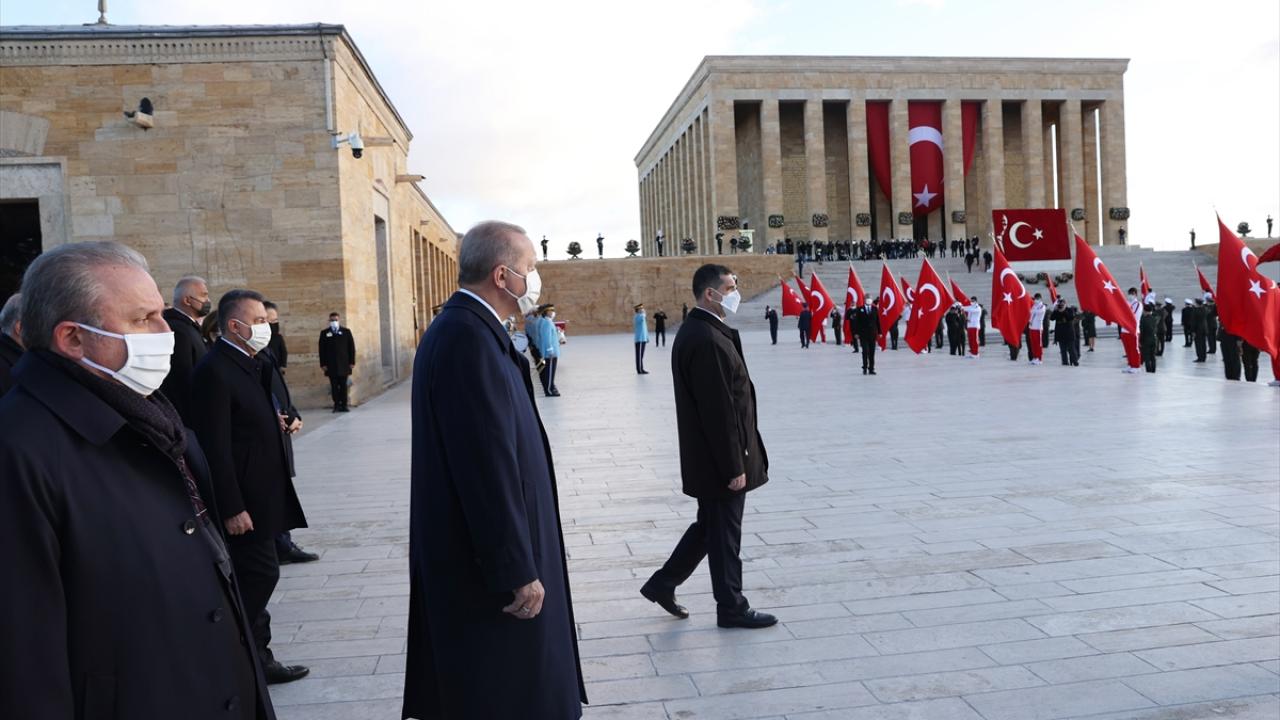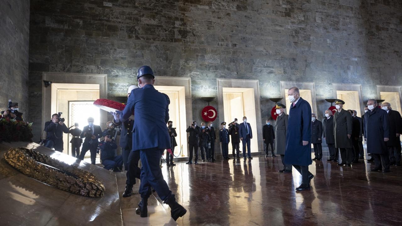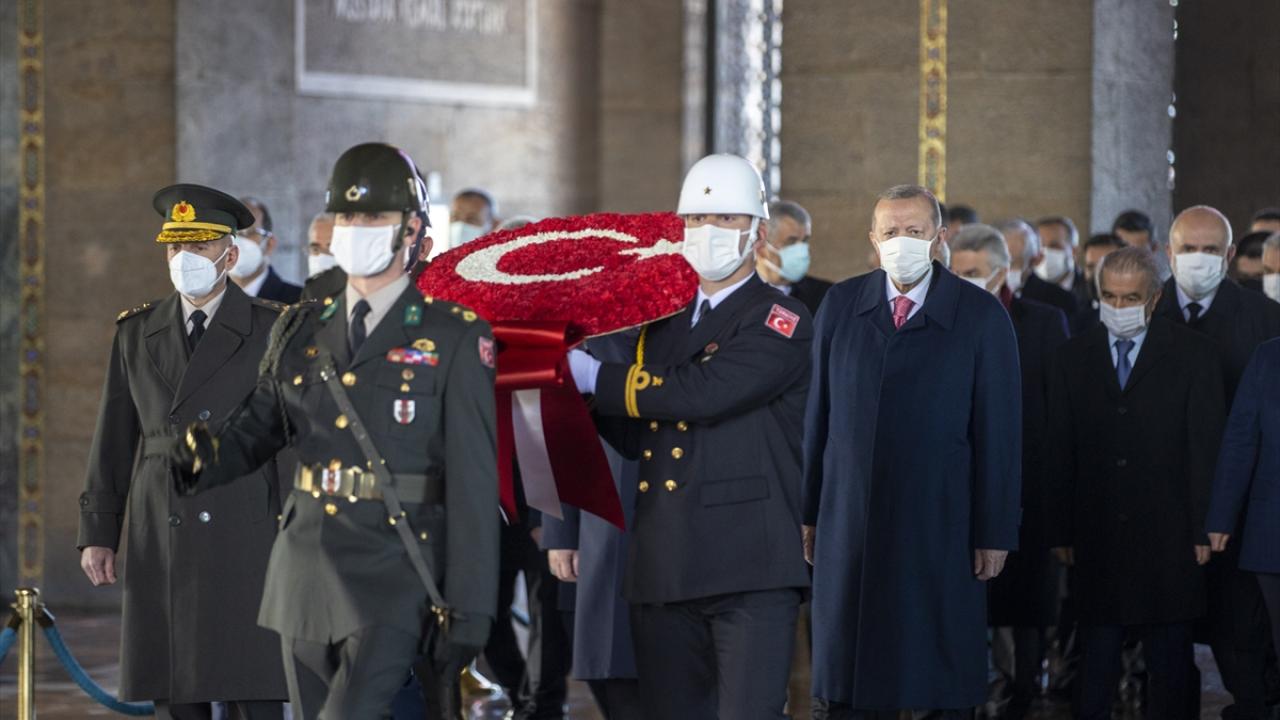 Erdoğan, kırmızı beyaz karanfillerden oluşan ay yıldızlı çelengi, Atatürk`ün mozolesine bıraktı.