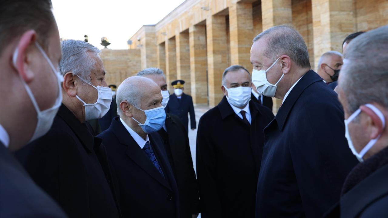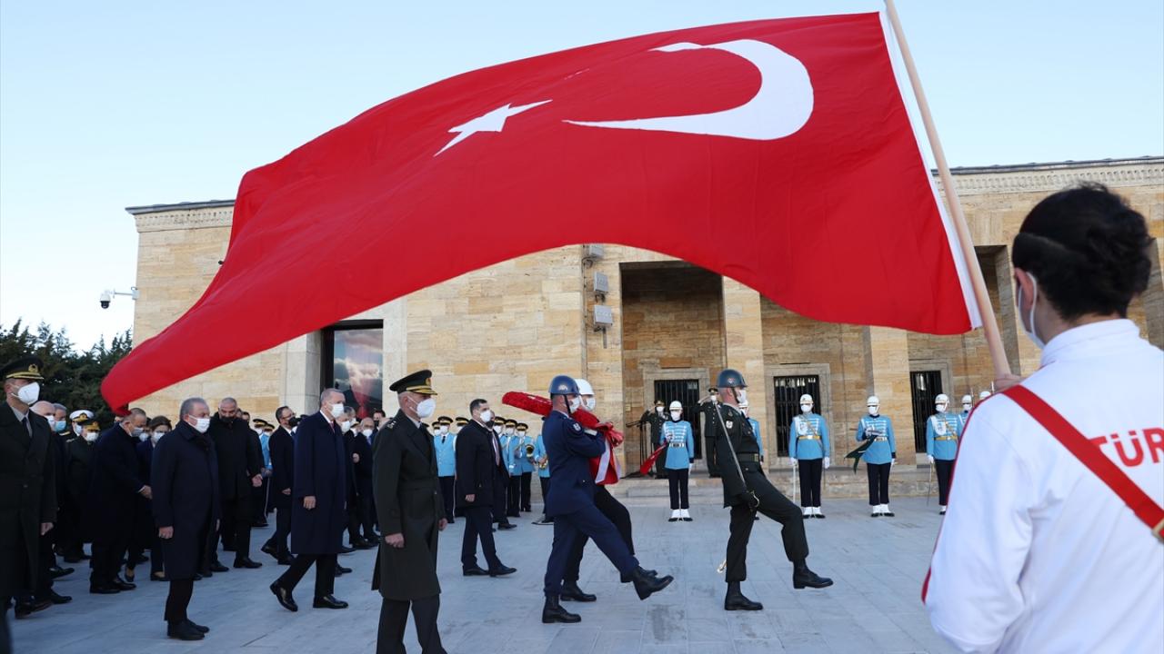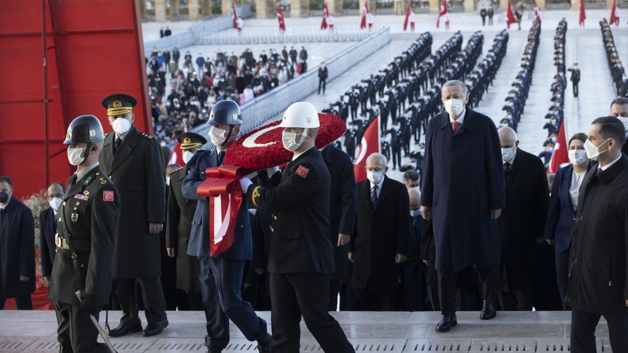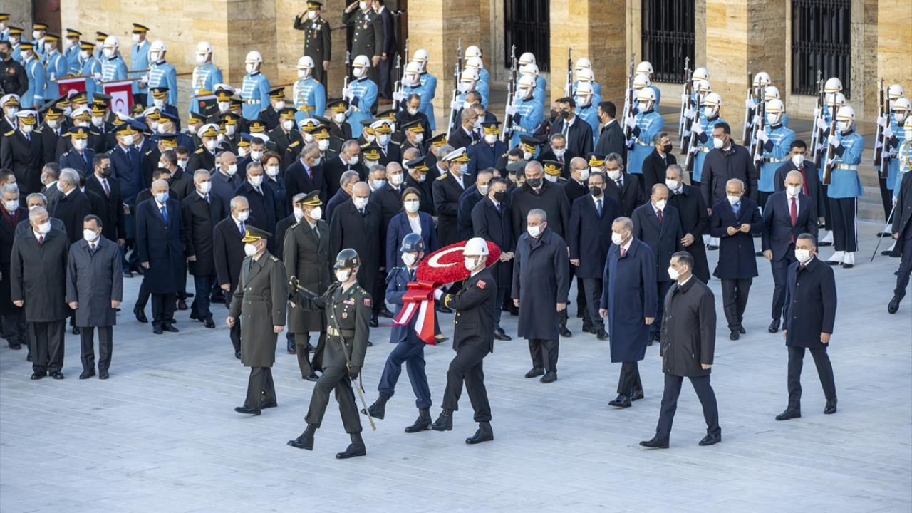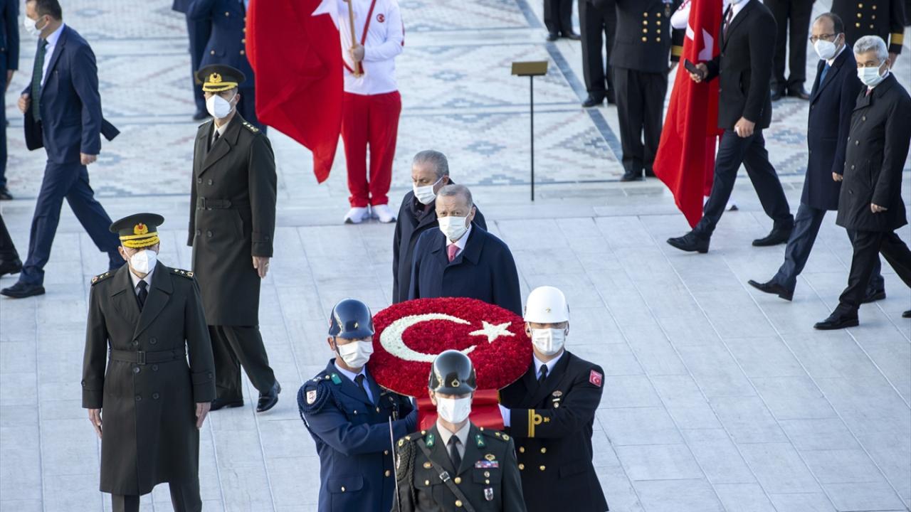 Erdoğan, kırmızı beyaz karanfillerden oluşan ay yıldızlı çelengi, Atatürk`ün mozolesine bıraktı.