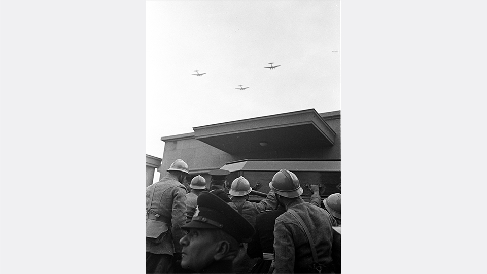 Atatürk`ün cenazesi, 19 Kasım 1938`de Yavuz Zırhlısı ile İzmit`e götürülürken Türk Hava Kuvvetlerine bağlı uçaklar saygı uçuşu yaparken. (Arşiv)