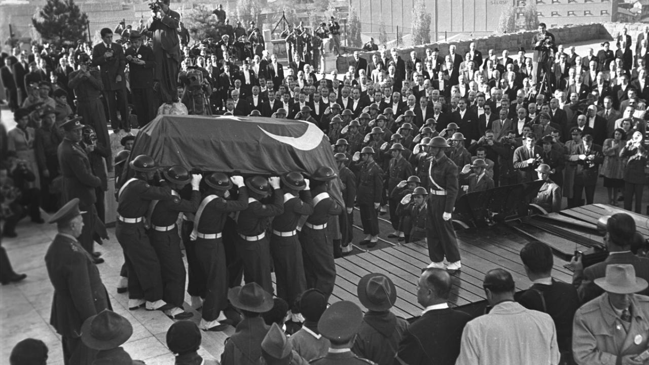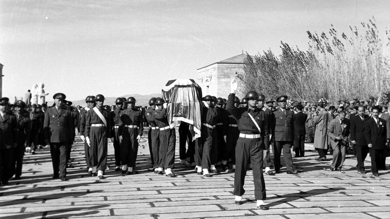 4 Kasım 1953`te Atatürk`ün naaşı Anıtkabir`e götürülmek üzere Etnografya Müzesi`ndeki geçici kabrinden çıkarıldı. (Arşiv)