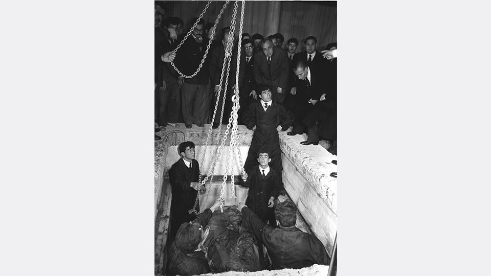 Atatürk`ün naaşı, 10 Kasım 1953`te Etnografya Müzesi`nden nakledilmeden önce kalafata konulmuştu. (Arşiv)