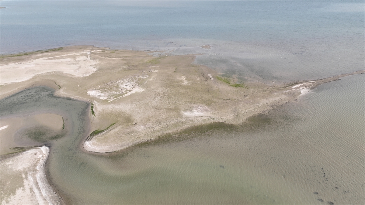 Havadan görüntülenen Büyükçekmece Gölü`nde daha önce dolu olan bölgelerden suların çekildiği görüldü.