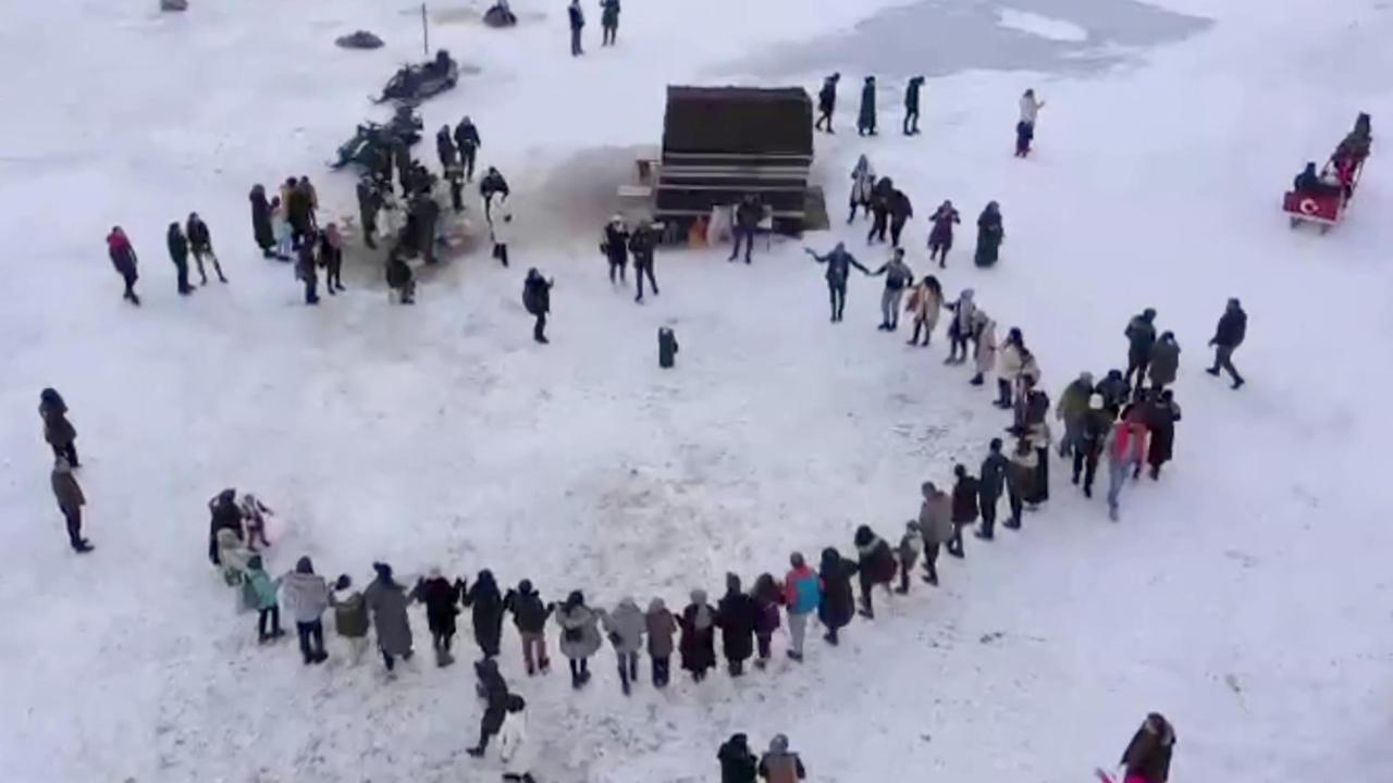 Buz tutan Çıldır Gölü, tatilcilerin eğlence mekanı oldu