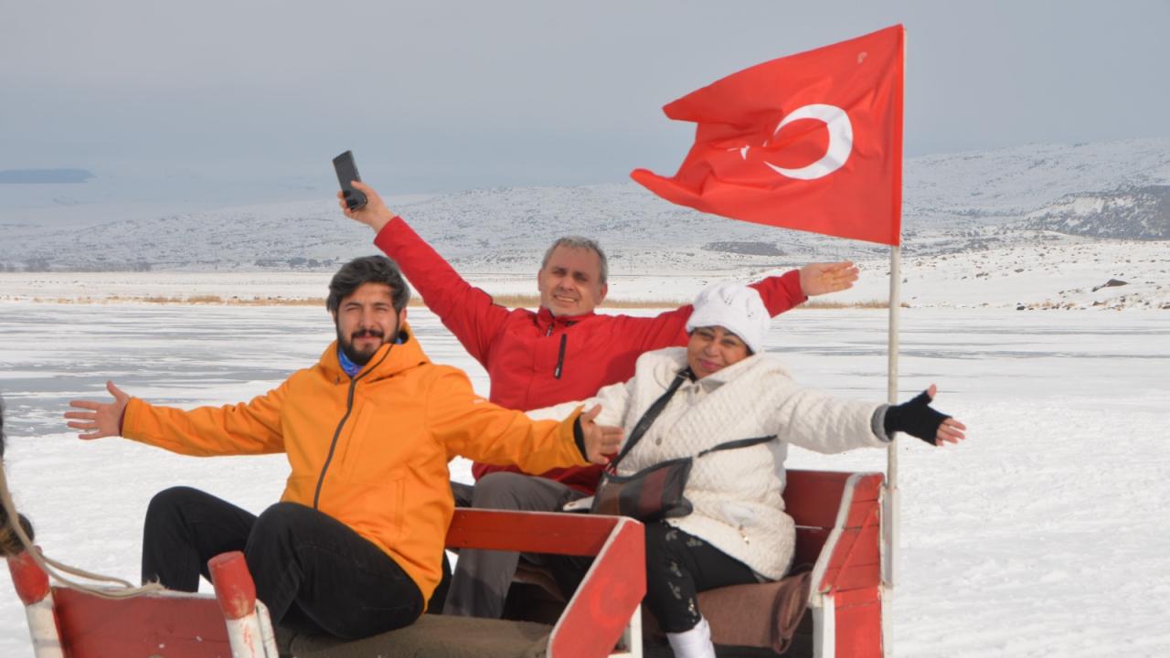 Kışın yüzeyi buz tuttuğu için köylülerin üzerinden ulaşım sağladığı Çıldır Gölü, her yıl binlerce ziyaretçiyi ağırlıyor.