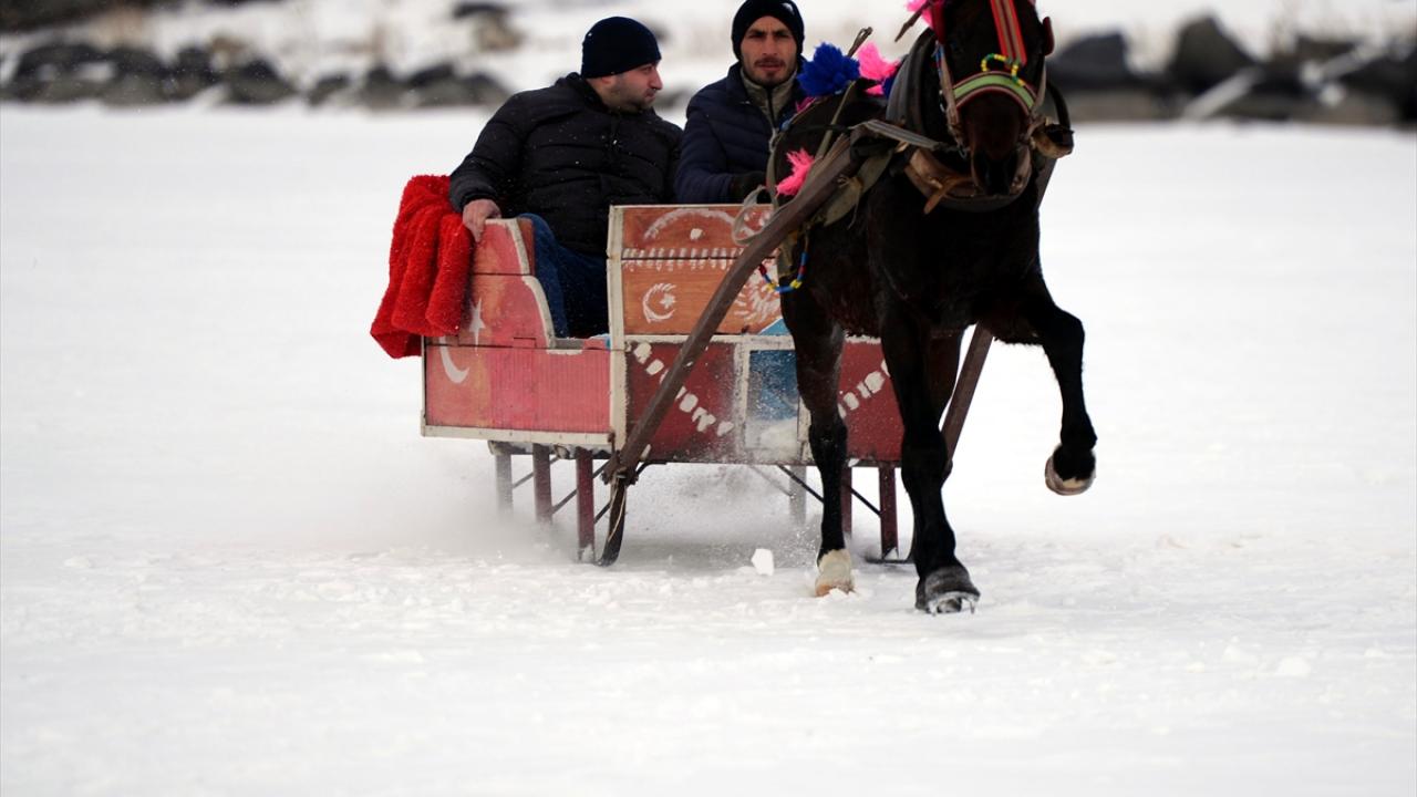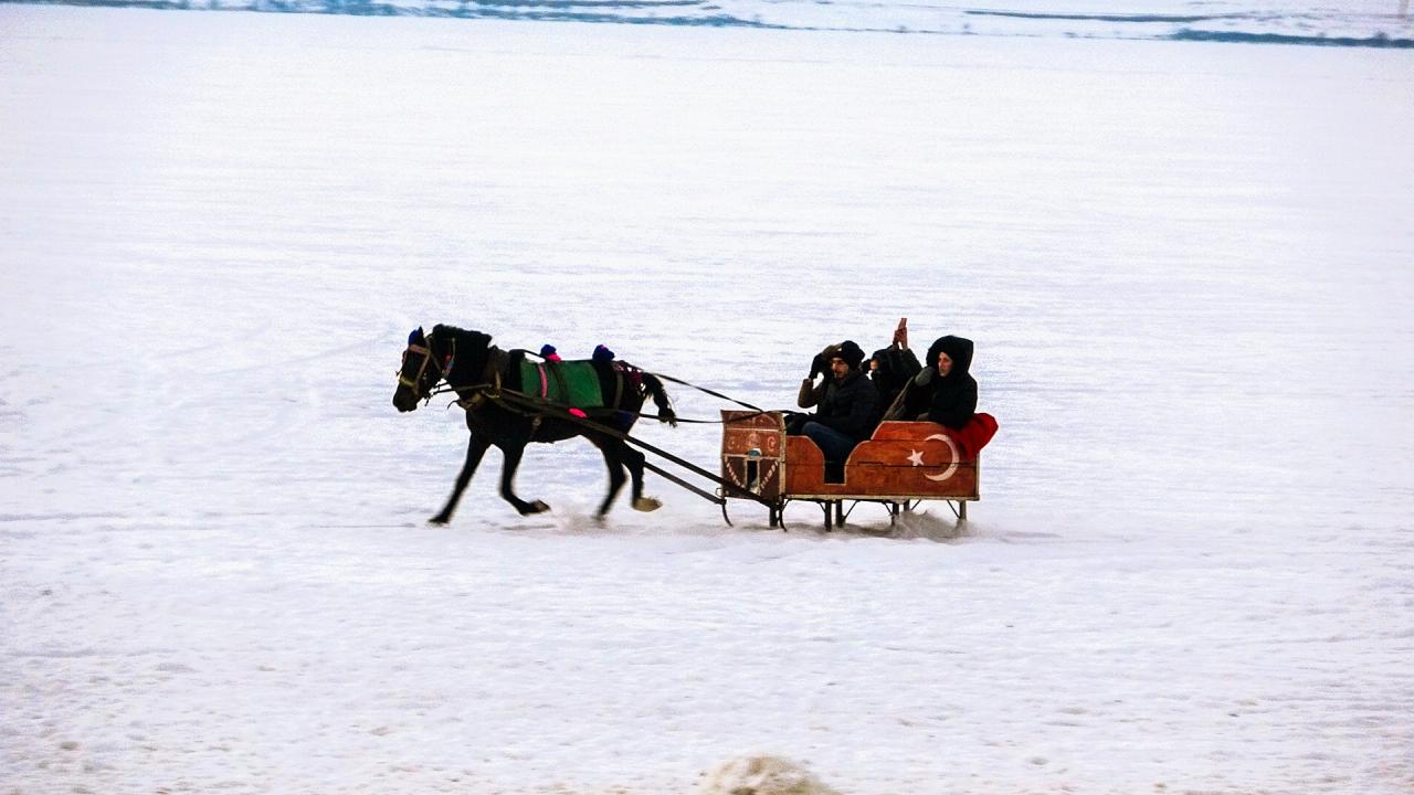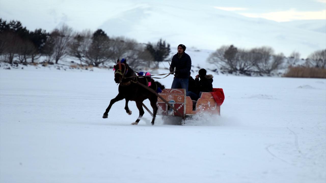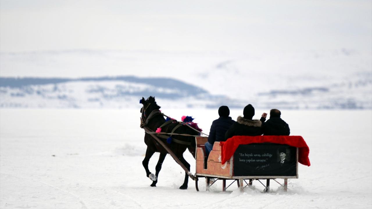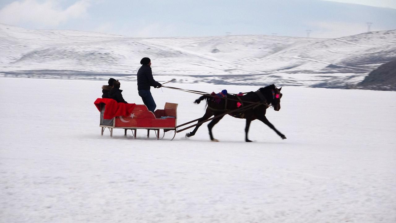 Taştan, gölün üzerindeki buzların bir süre önce sıcak hava nedeniyle erimeye başladığını ancak son dönemdeki kar yağışı ve soğuk hava yüzünden yeniden donduğunu anlatarak, "Şu an buz üstünde atlı kızak keyfi yapıyoruz, bu bambaşka bir şey. Tarifi mümkün olmayan bir ortam. Gelip burada bu ortamı bizzat yaşamak lazım. Misafirlerimden önce ben burayı gelip görmek istedim. İyi ki gelmişim." diye konuştu.