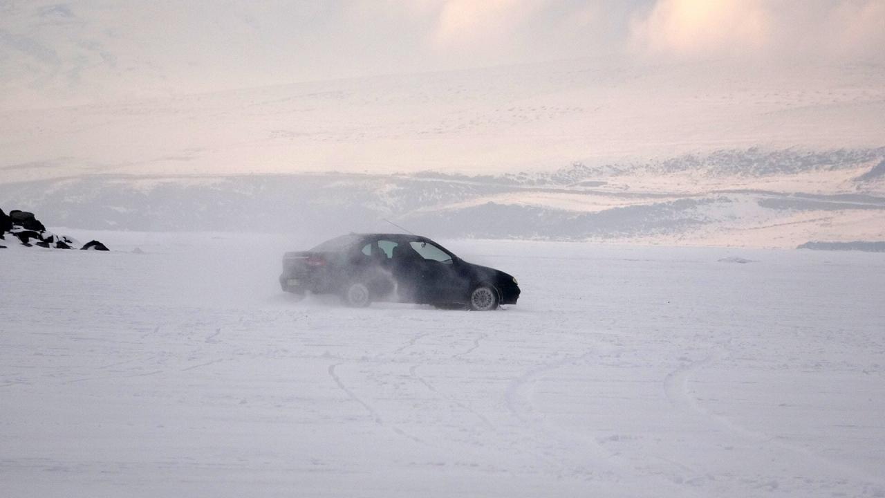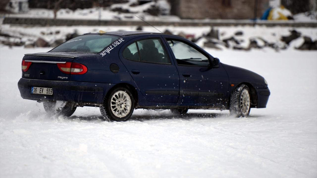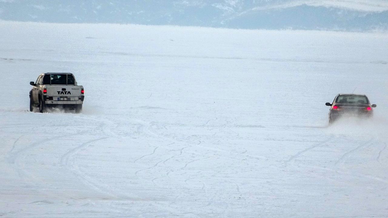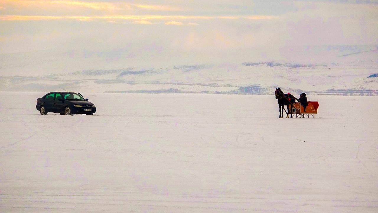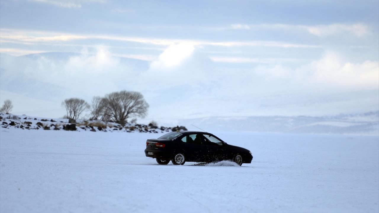 Bazı ziyaretçiler göl üzerinde atlı kızaklarla gezinti yaparken bazıları da araçlarıyla buzun üstüne çıkıp drift yaptı.