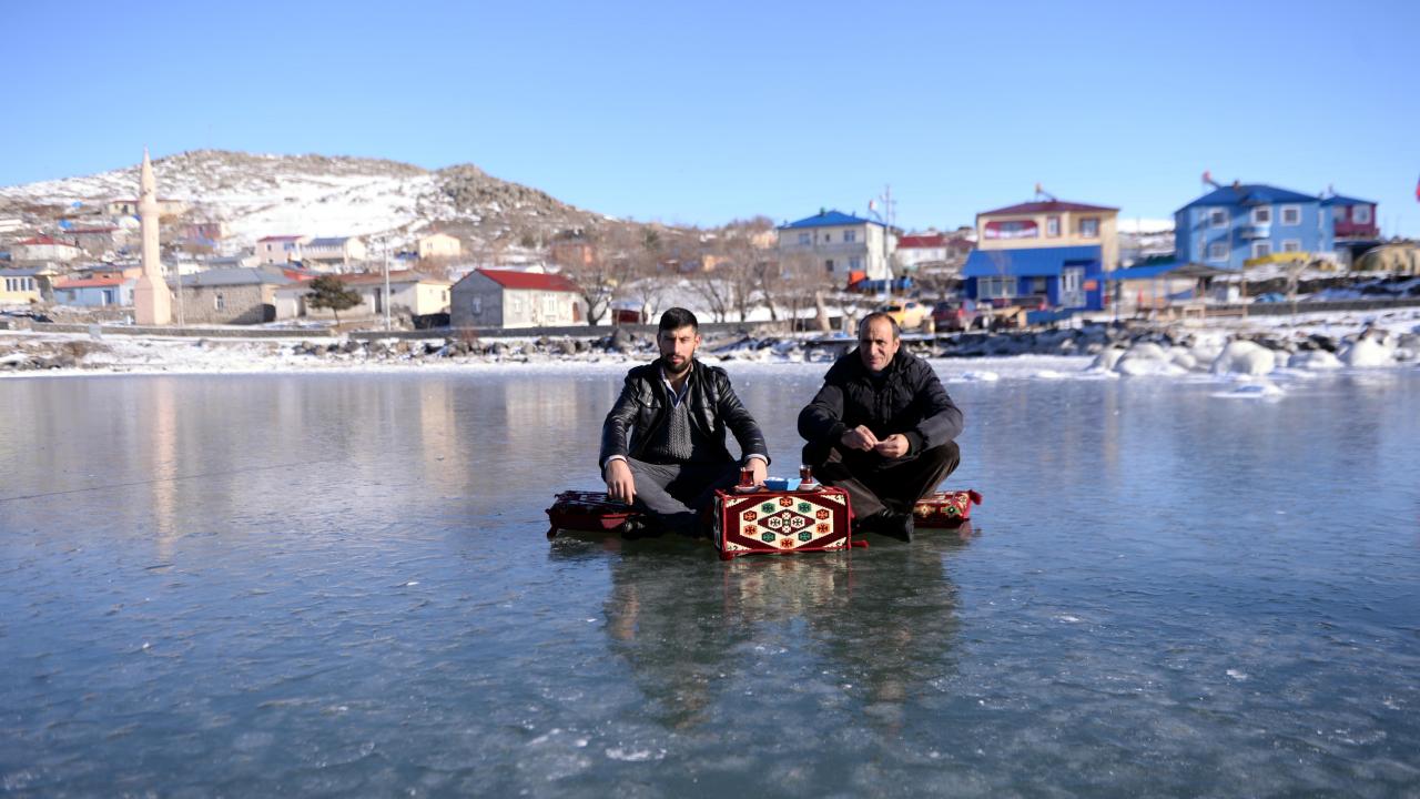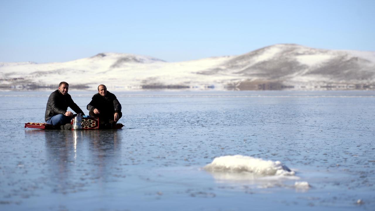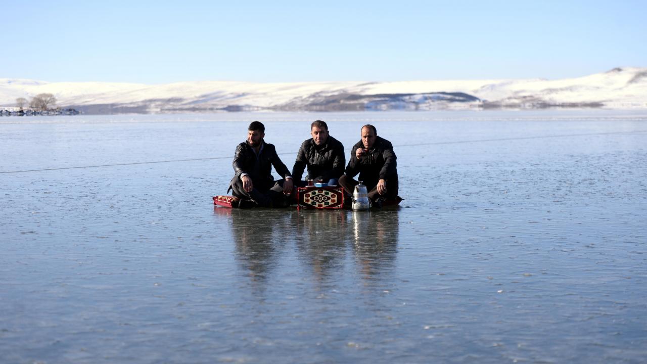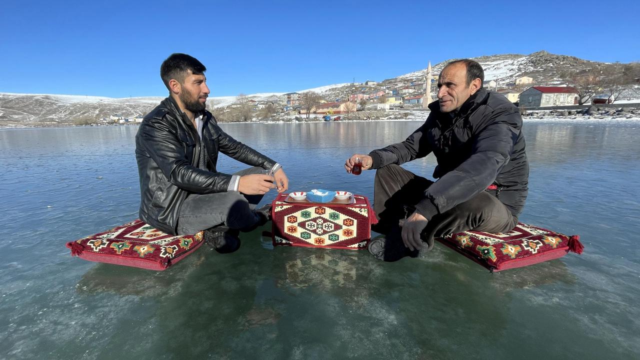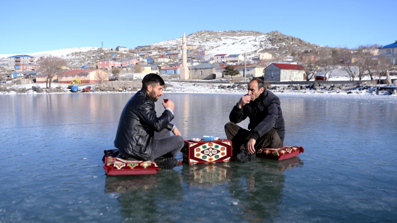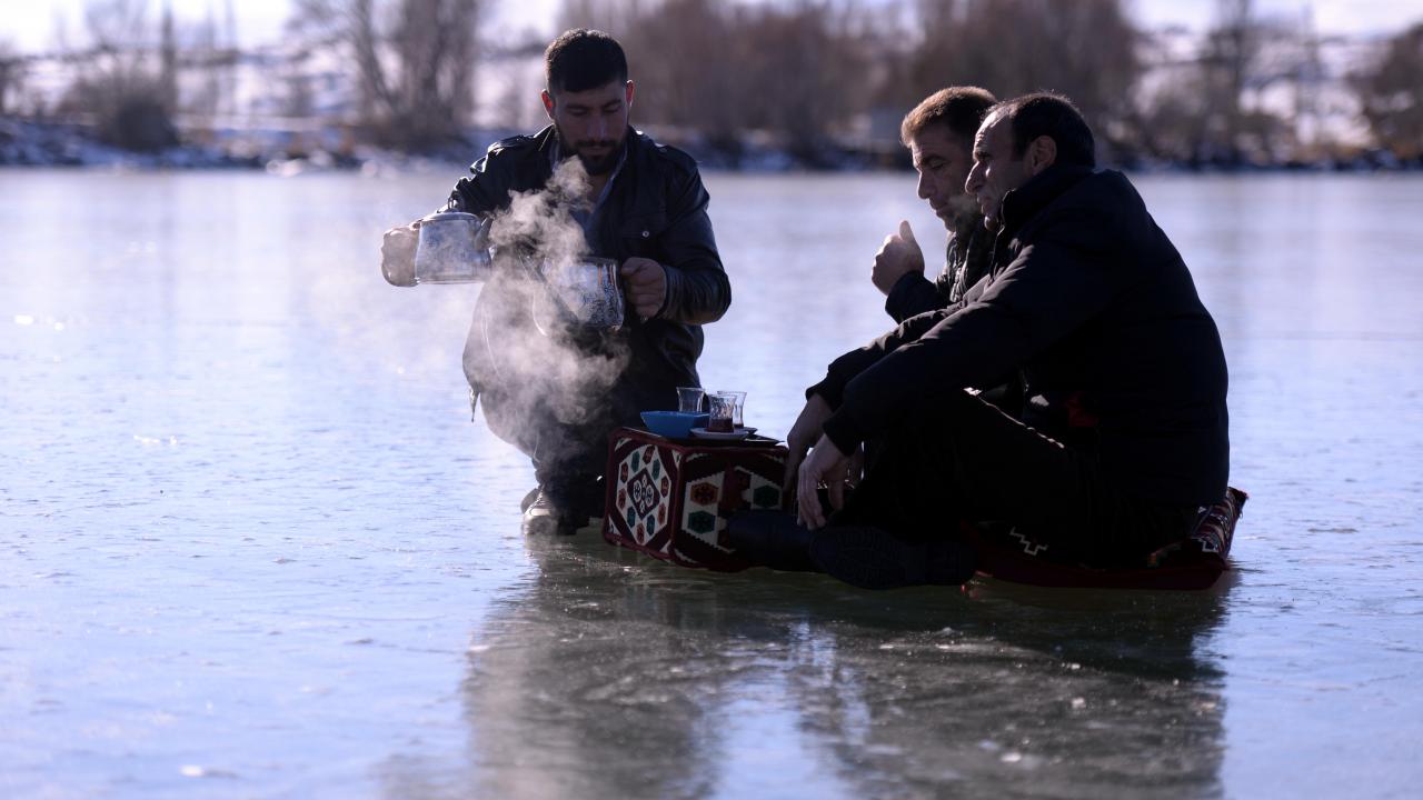 Çıldır`dan gelen Öztürk Durdağı, "Bu anı sabırsızlıkla bekliyorduk. Artık gölümüz dondu, üstüne rahatlıkla çıkabiliyoruz. Biz de bugün çay yaparak bunun keyfini çıkardık" dedi.