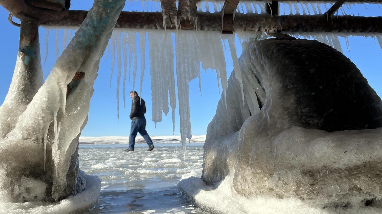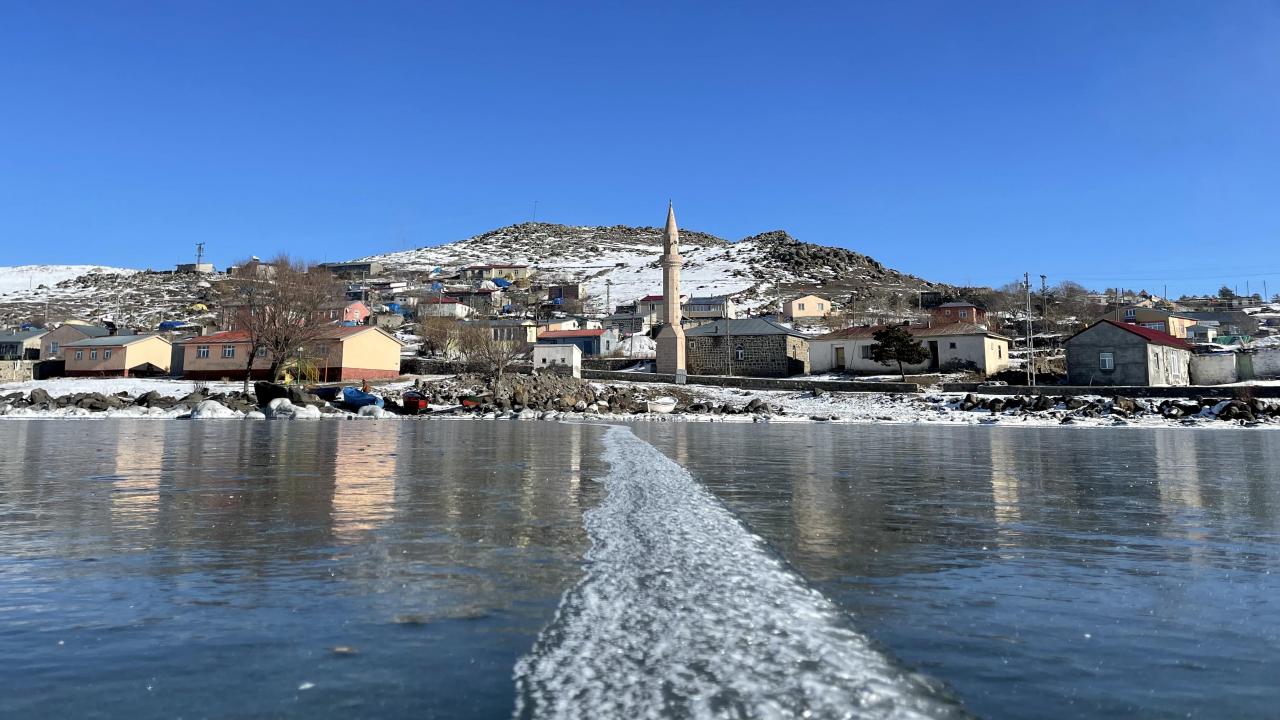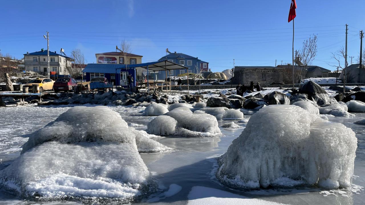 Hava sıcaklığının gece sıfırın altında 24 dereceye kadar düştüğü kentte, gölün Çıldır ilçesi sınırlarındaki yüzeyinin büyük bölümü buzla kaplandı.