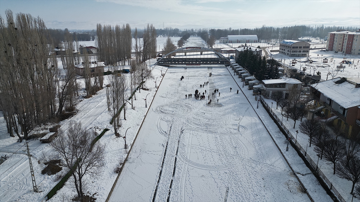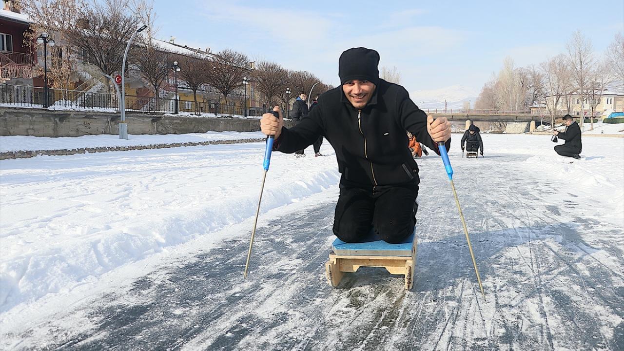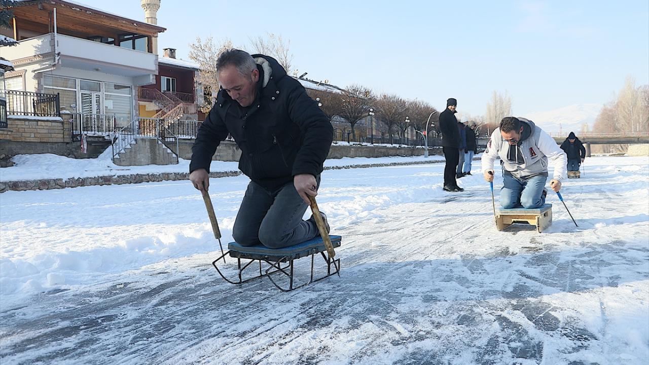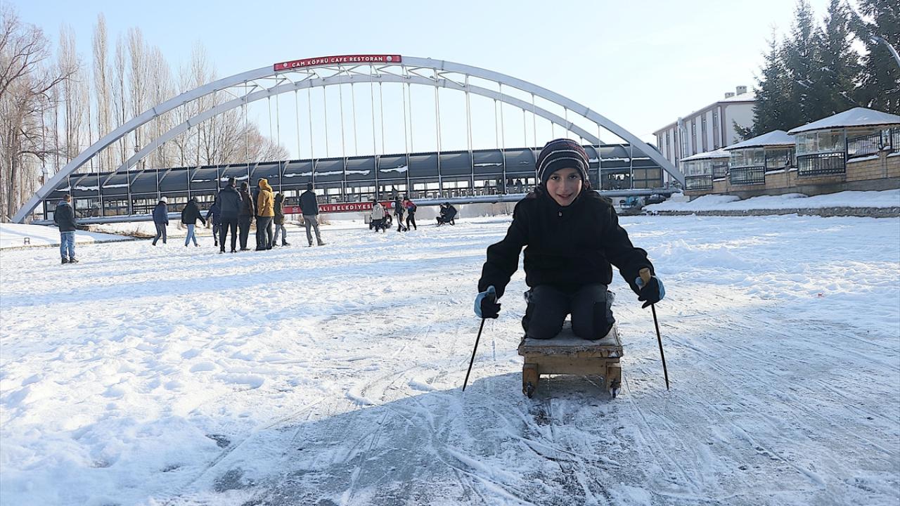 Servet Terzi ise nehrin donduğunu görünce buraya geldiklerini belirterek, "Hafta sonu burada buzun üzerindeki karı temizledik. Kızaklarla bugün burada toplanma kararı aldık. Hem arkadaşlarımızın hem çocukların katıldığı güzel bir etkinlik oldu." diye konuştu.