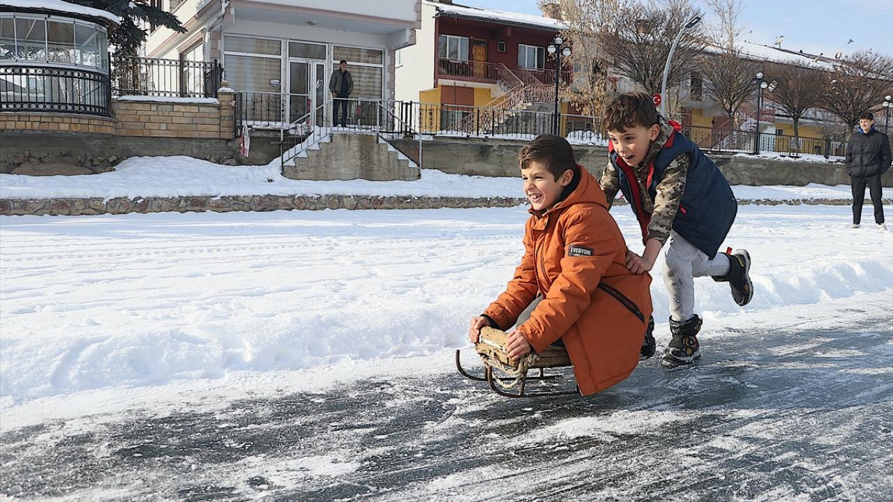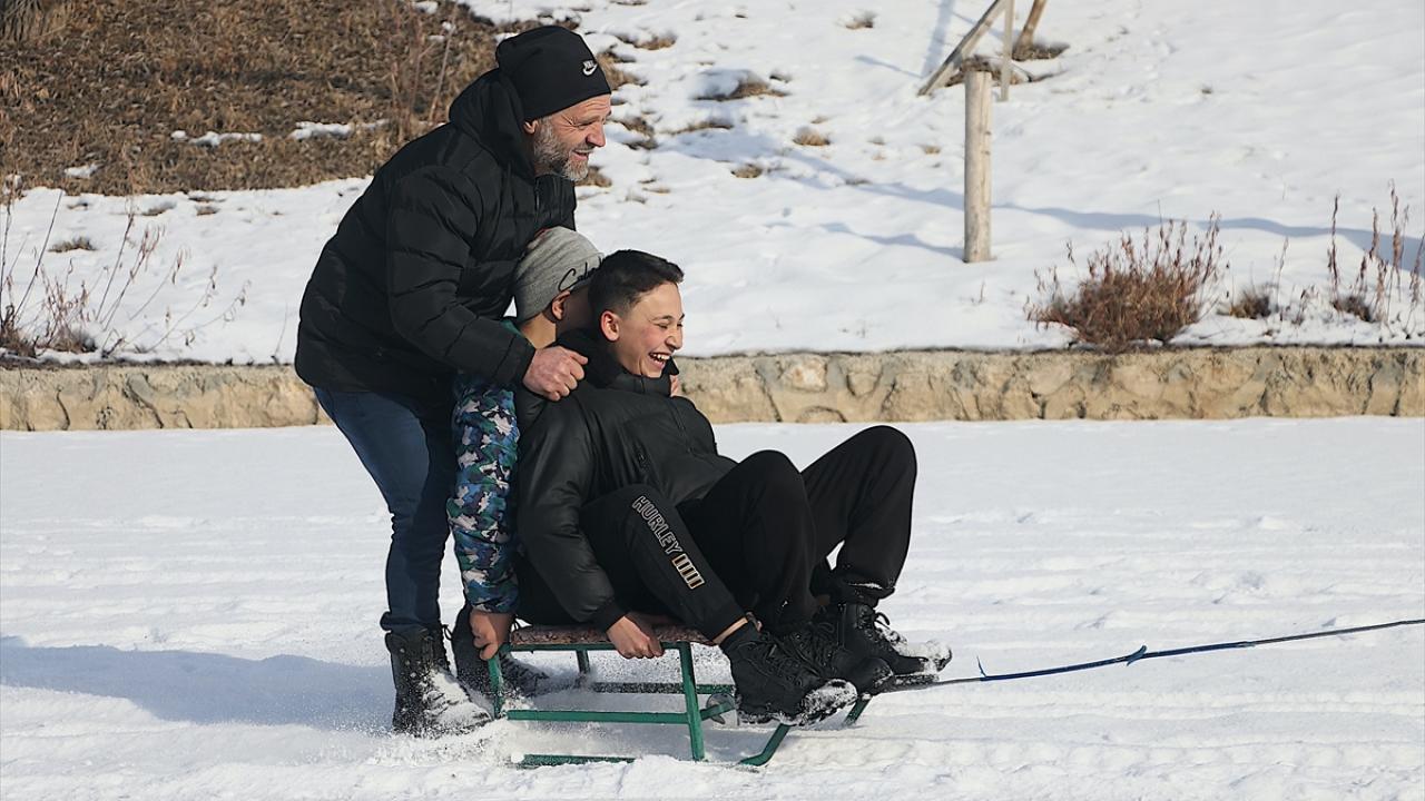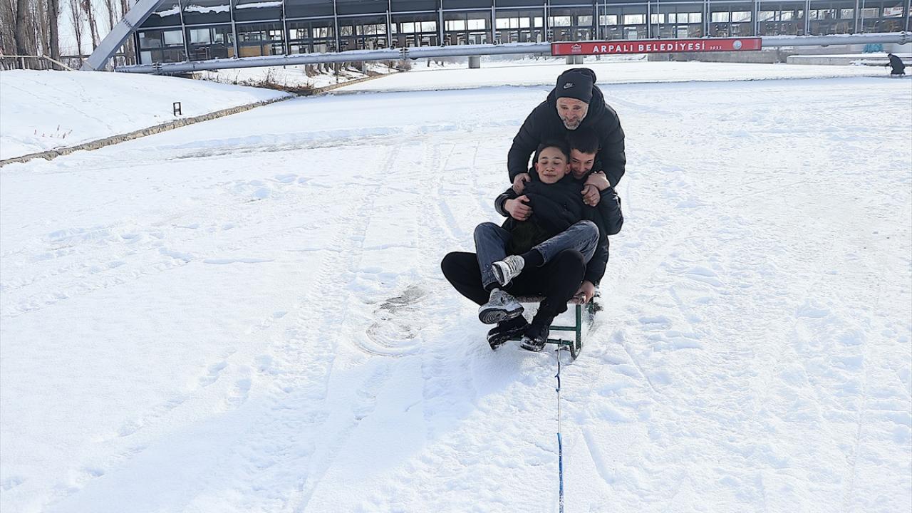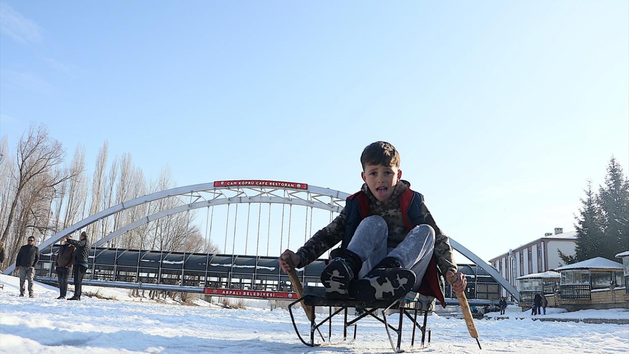 Servet Terzi ise nehrin donduğunu görünce buraya geldiklerini belirterek, "Hafta sonu burada buzun üzerindeki karı temizledik. Kızaklarla bugün burada toplanma kararı aldık. Hem arkadaşlarımızın hem çocukların katıldığı güzel bir etkinlik oldu." diye konuştu.