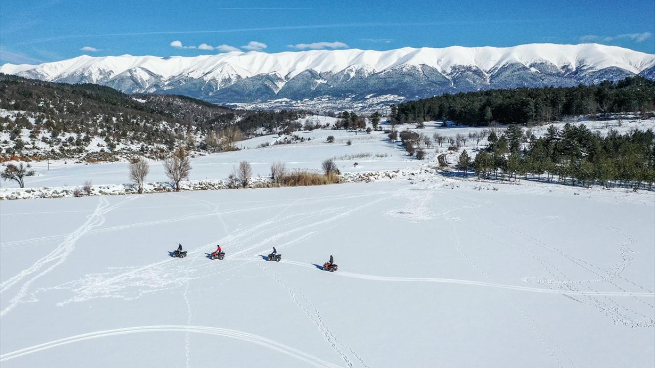 Uludağ'ın güney eteklerinde yer alan ve doğal güzelliğiyle ziyaretçilerini adeta büyüleyen Gököz Göleti, buz tutan yüzeyinde ATV safari tutkunlarına adrenalin dolu sürüş keyfi yaşatıyor.