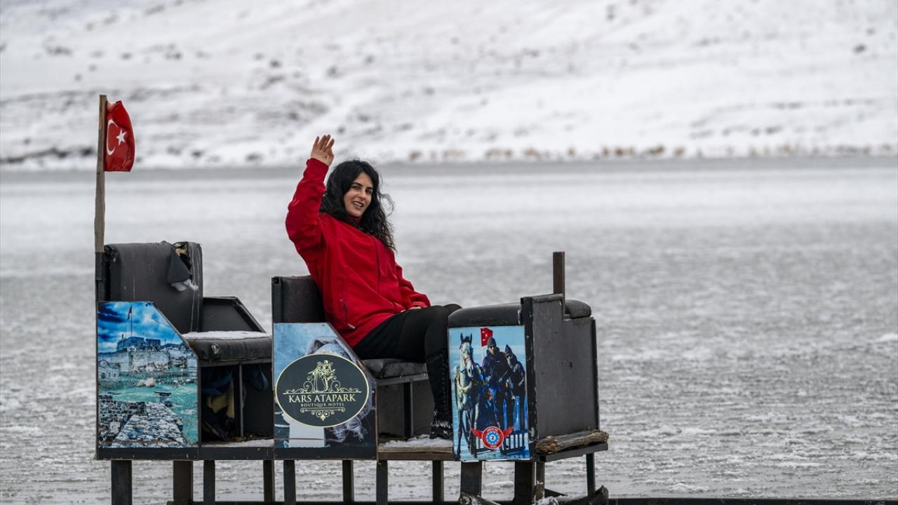 Kars`ın Arpaçay ilçesine bağlı Taşbaşı köyü mevkisinde buz tabakaları oluşan göl, ziyaretçilerini de ağırlamaya başladı. Atlı kızakçılar, etrafı beyaza bürünen göl kıyısında vatandaşlara hizmet veriyor.