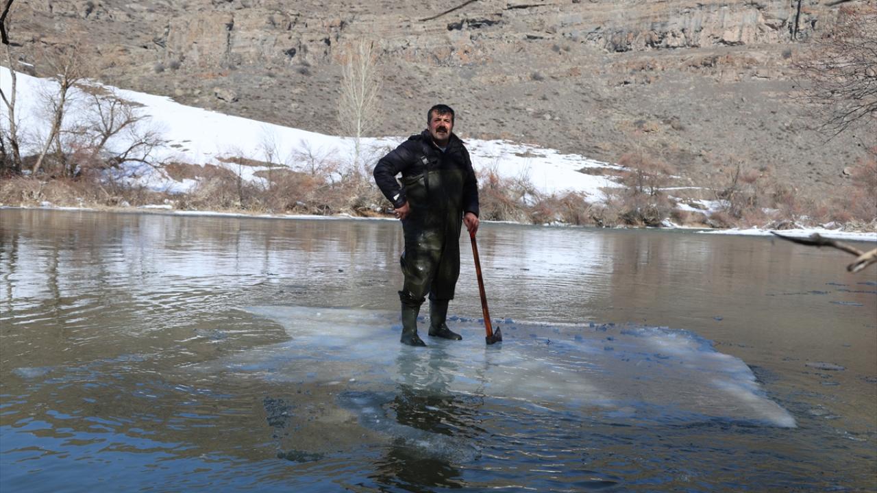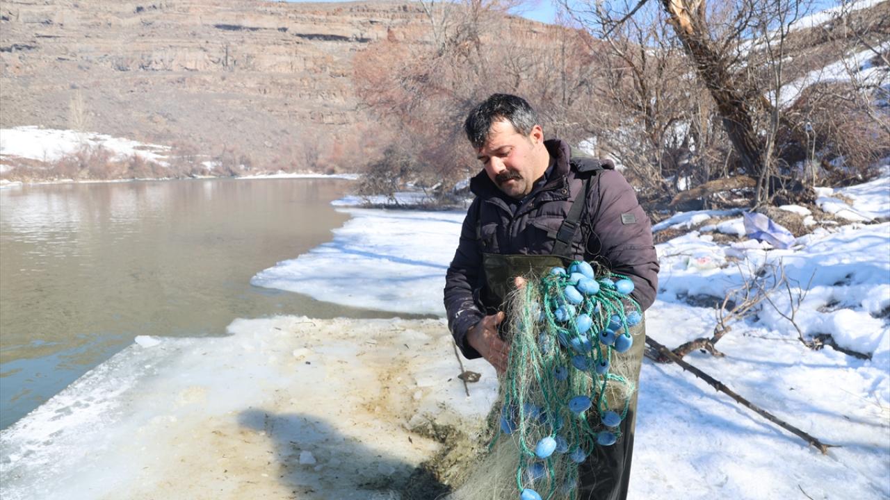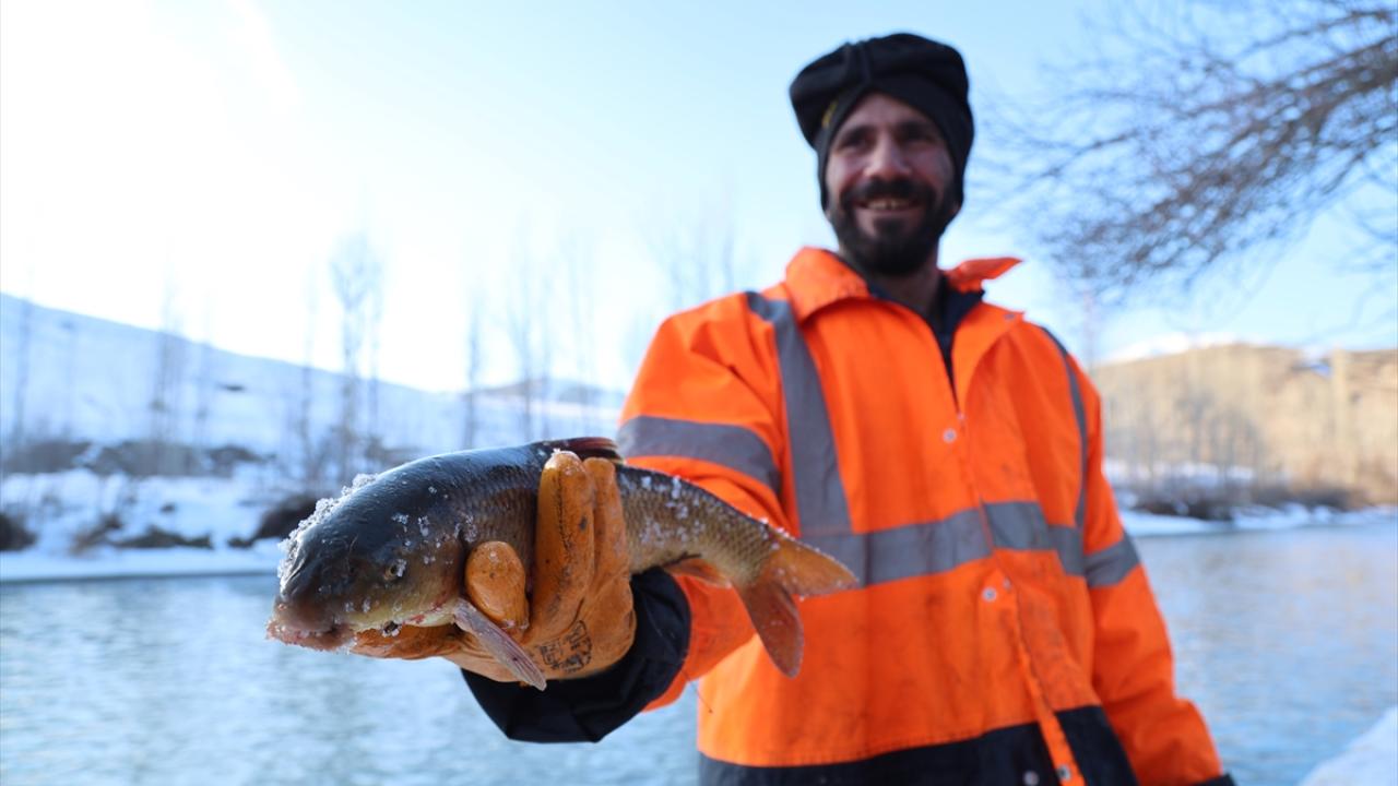 Buz tabakasının kalınlığı ve soğuk hava nedeniyle zaman zaman zorlandıklarını belirten Yıldırım, "Balık genellikle buzun altında uykuya yatıyor. Biz de mecbur buzu kırıp altından balığı çıkarıyoruz. Biraz çaba göstermemiz gerekiyor, yoksa elimiz boş döneriz." dedi.