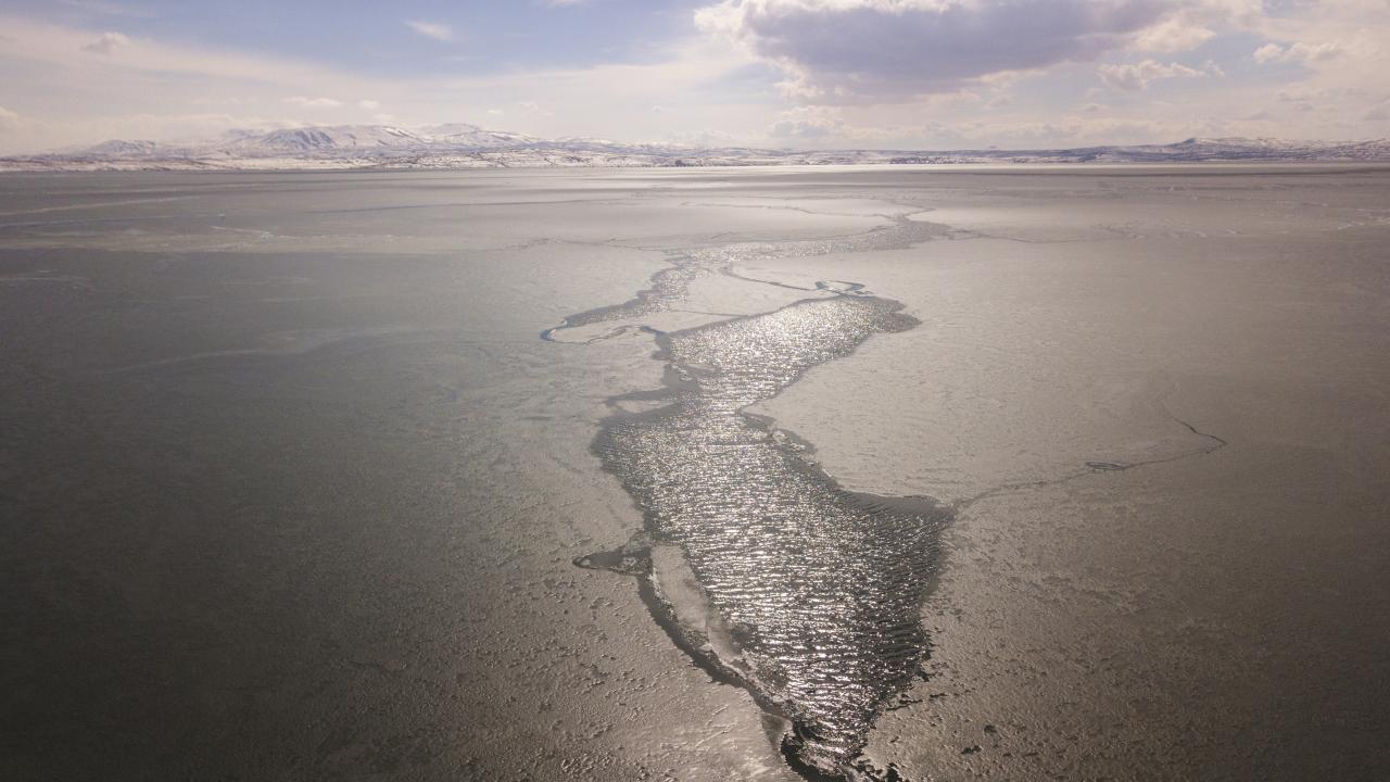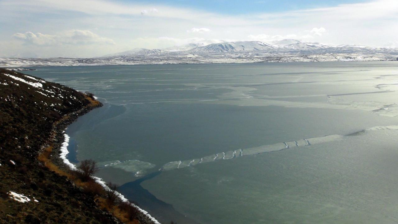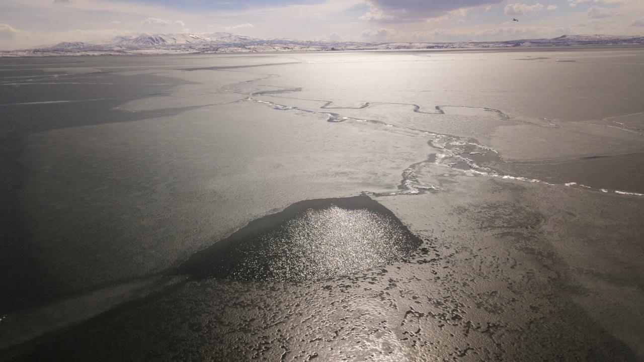 Bu yıl kar yağışının ve soğukların geç başlaması nedeniyle geç donan Nazik Gölü’nün yüzeyi sadece 1 ay süreyle buzlanan kaplı kaldı.