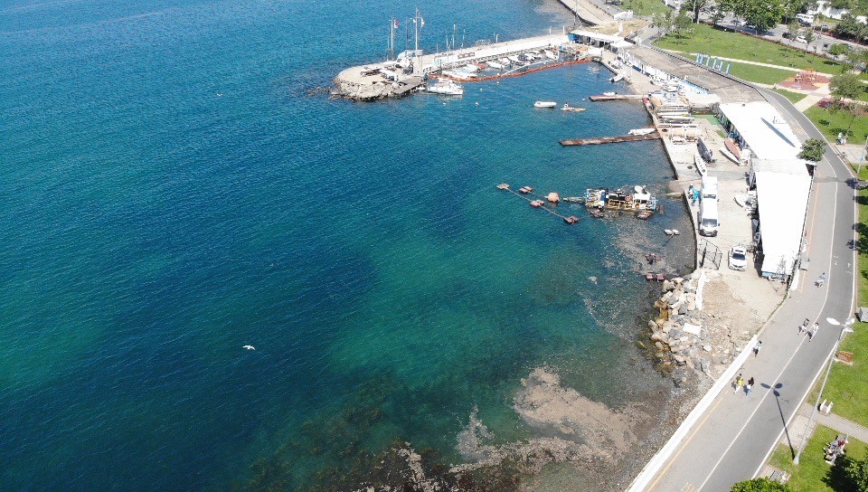 Marmara Denizine kıyısı olan illerde müsilaj seferberliği devam ederken, çalışmalar kapsamında Caddebostan sahilindeki deniz salyaları temizliğin 3’üncü hortumlarla çekilerek toplandı.