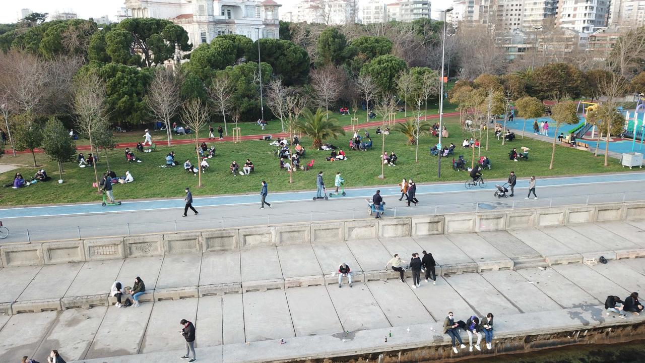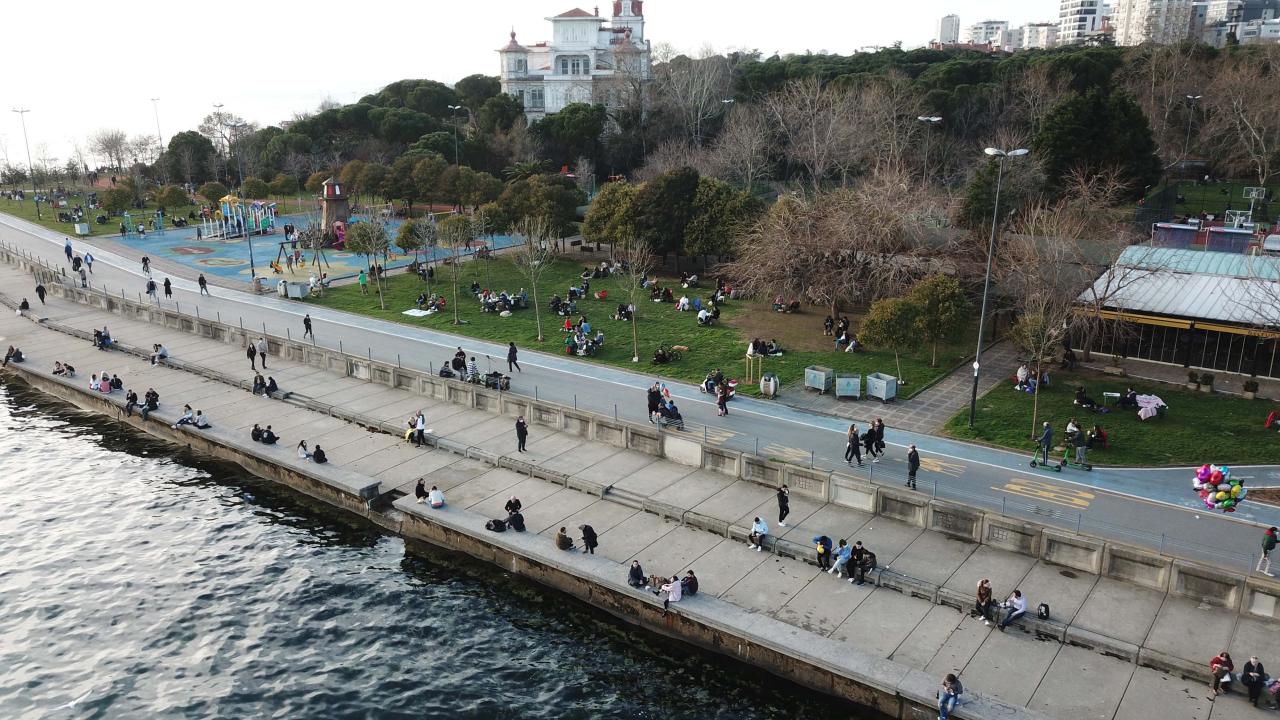 İstanbullular güneşli havanın da etkisiyle Caddebostan Sahili'ne akın etti. Vatandaşların bazıları çimlerde piknik yaptı, kimileri ise sahilde yürüdü.