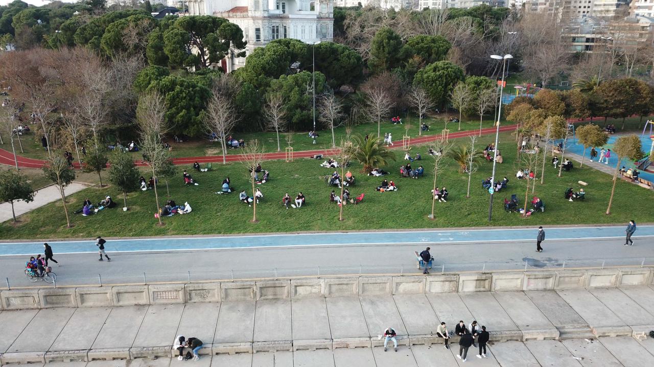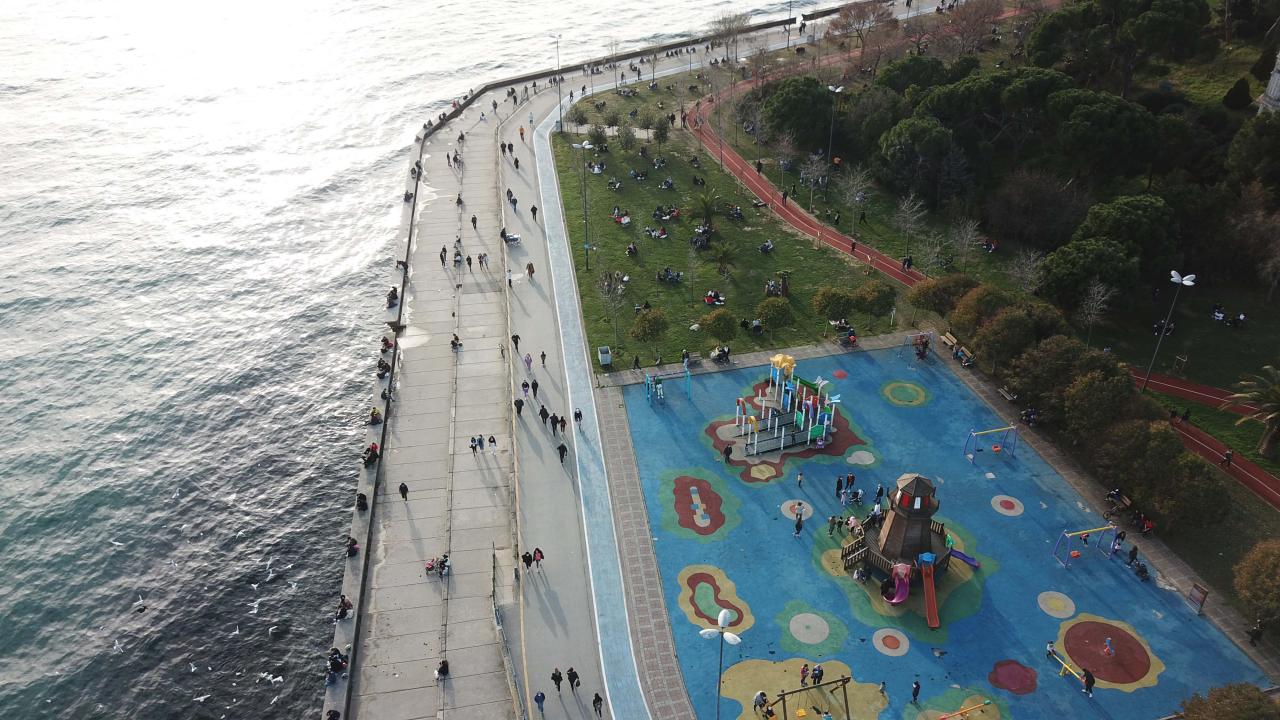 Caddebostan Sahili'ndeki kalabalık havadan gözlendi