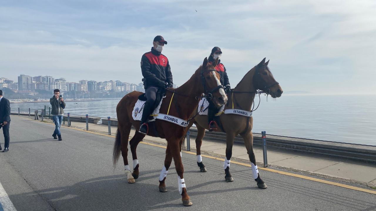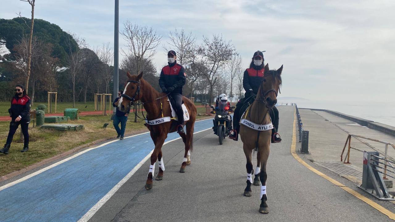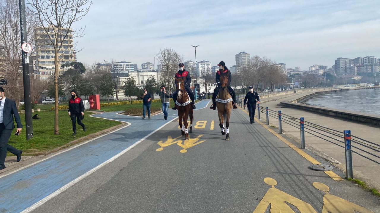 Kadıköy Caddebostan Sahili'nde atlı birliklerin denetimleri sokağa çıkma kısıtlamasının son gününde de devam etti.