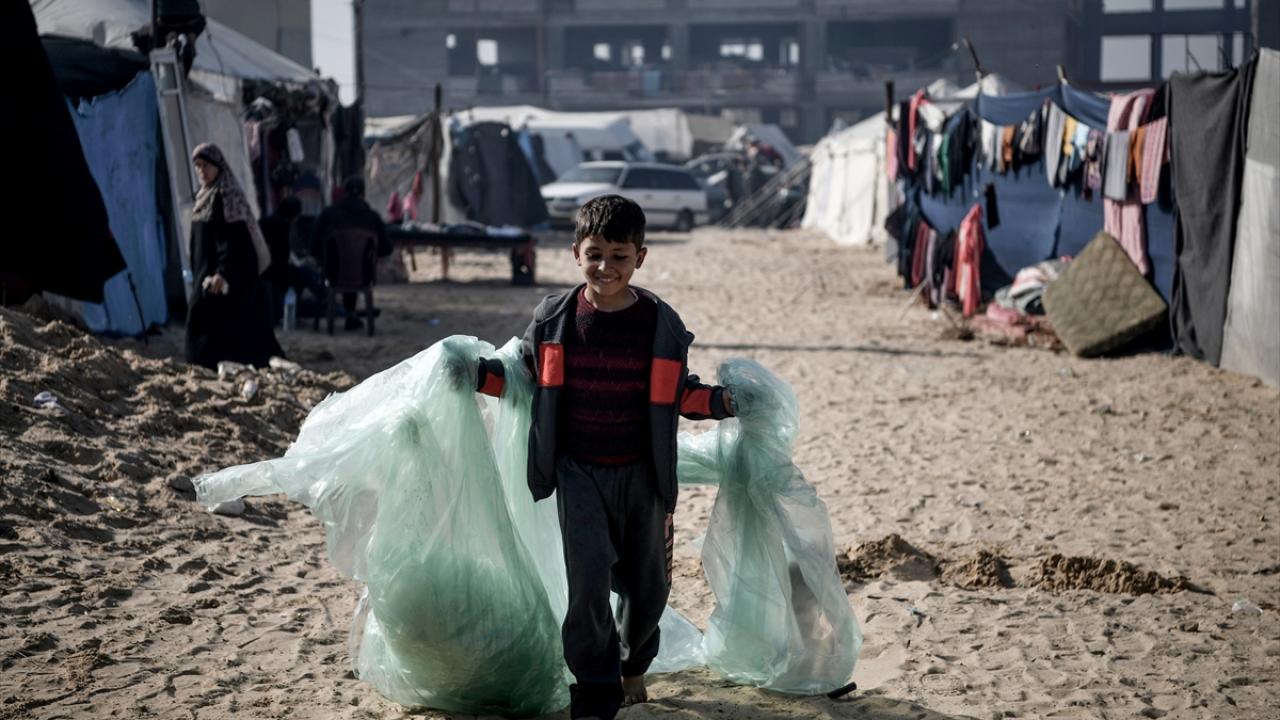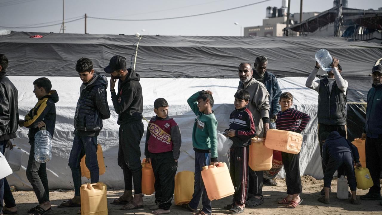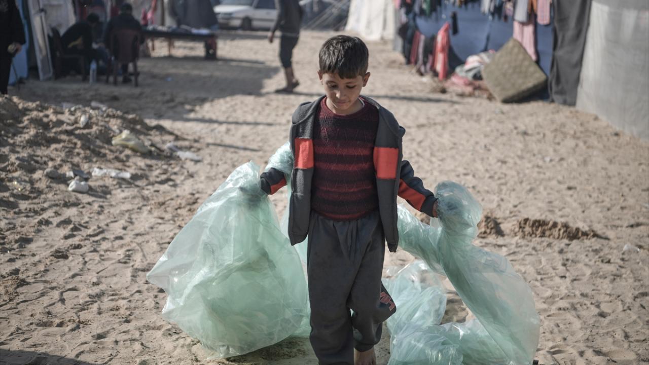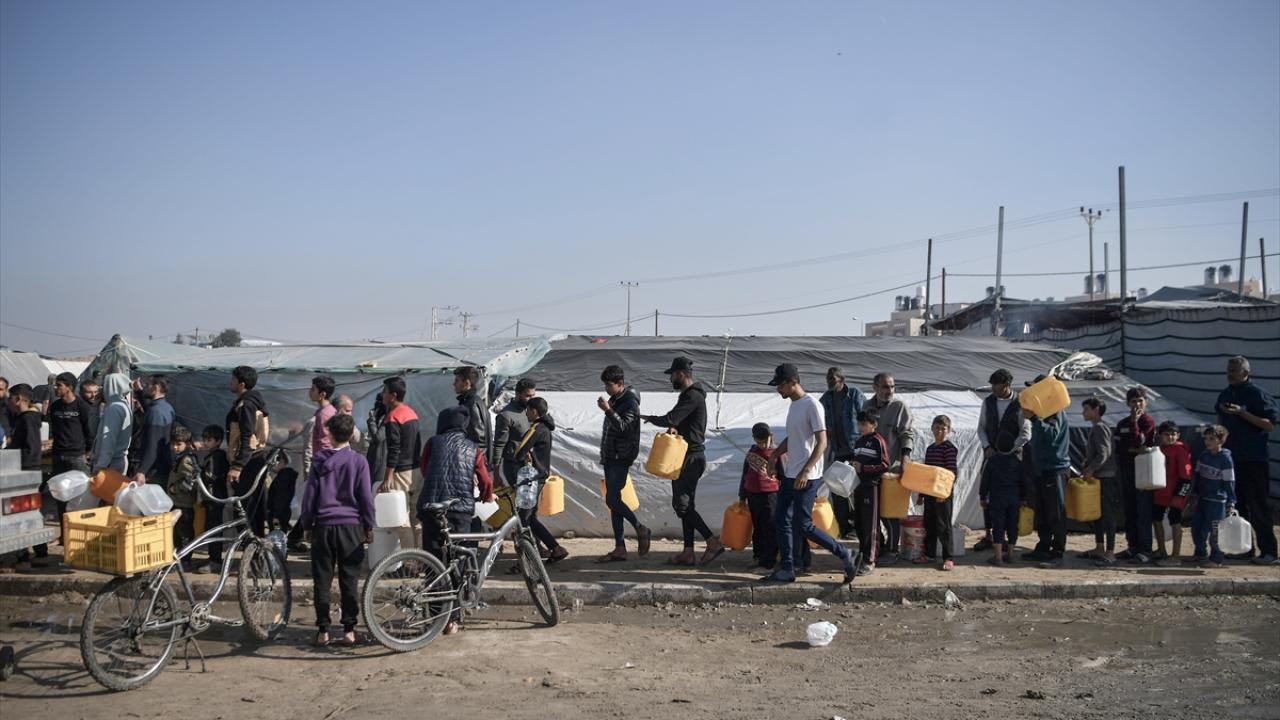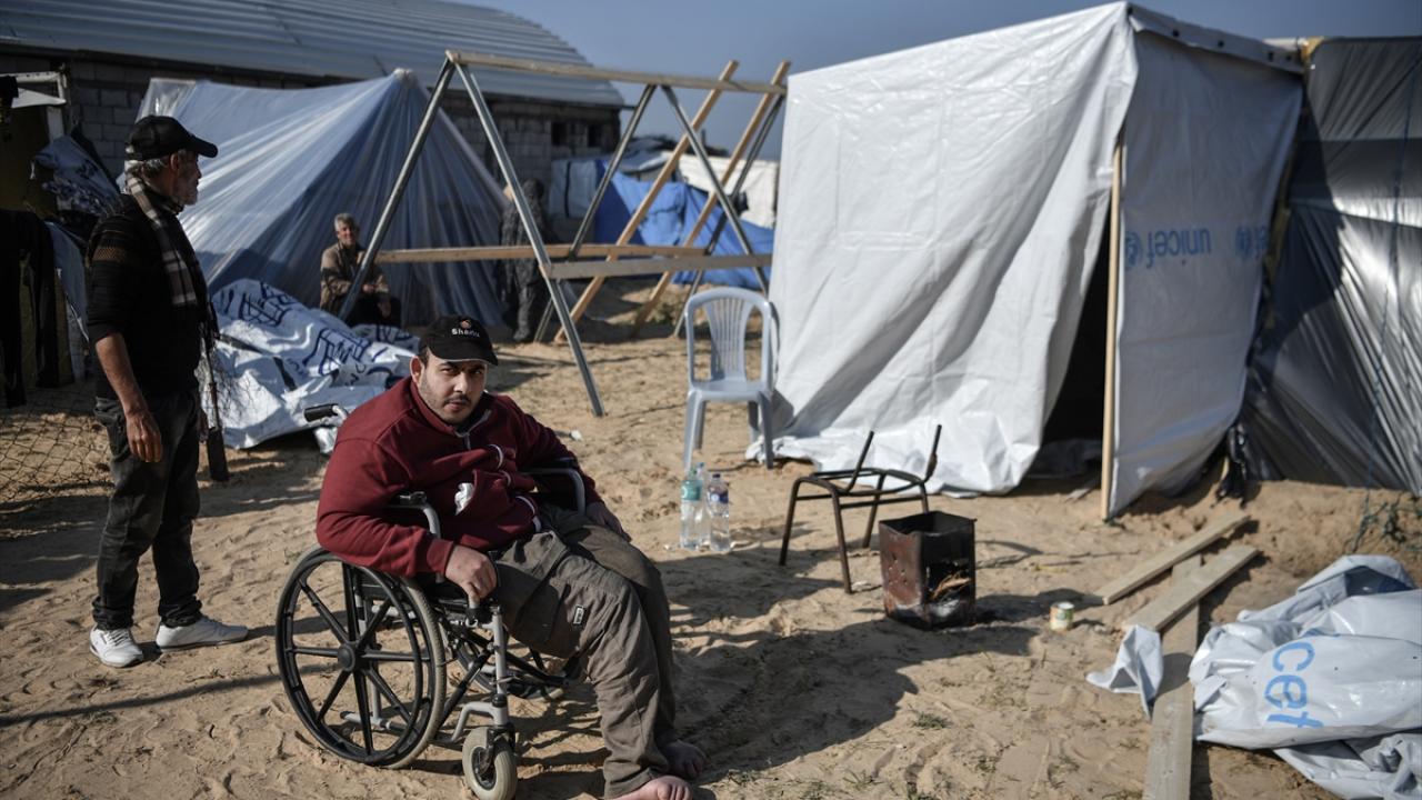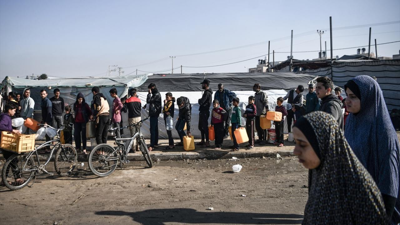 İsrail bombardımanından korunmak ve can güvenliklerini sağlayabilmek için evlerini terk edip Refah kentine sığınan Filistinli aileler, boş arazide kurdukları derme çatma çadırlarda soğuk hava şartlarıyla mücadele ediyor.