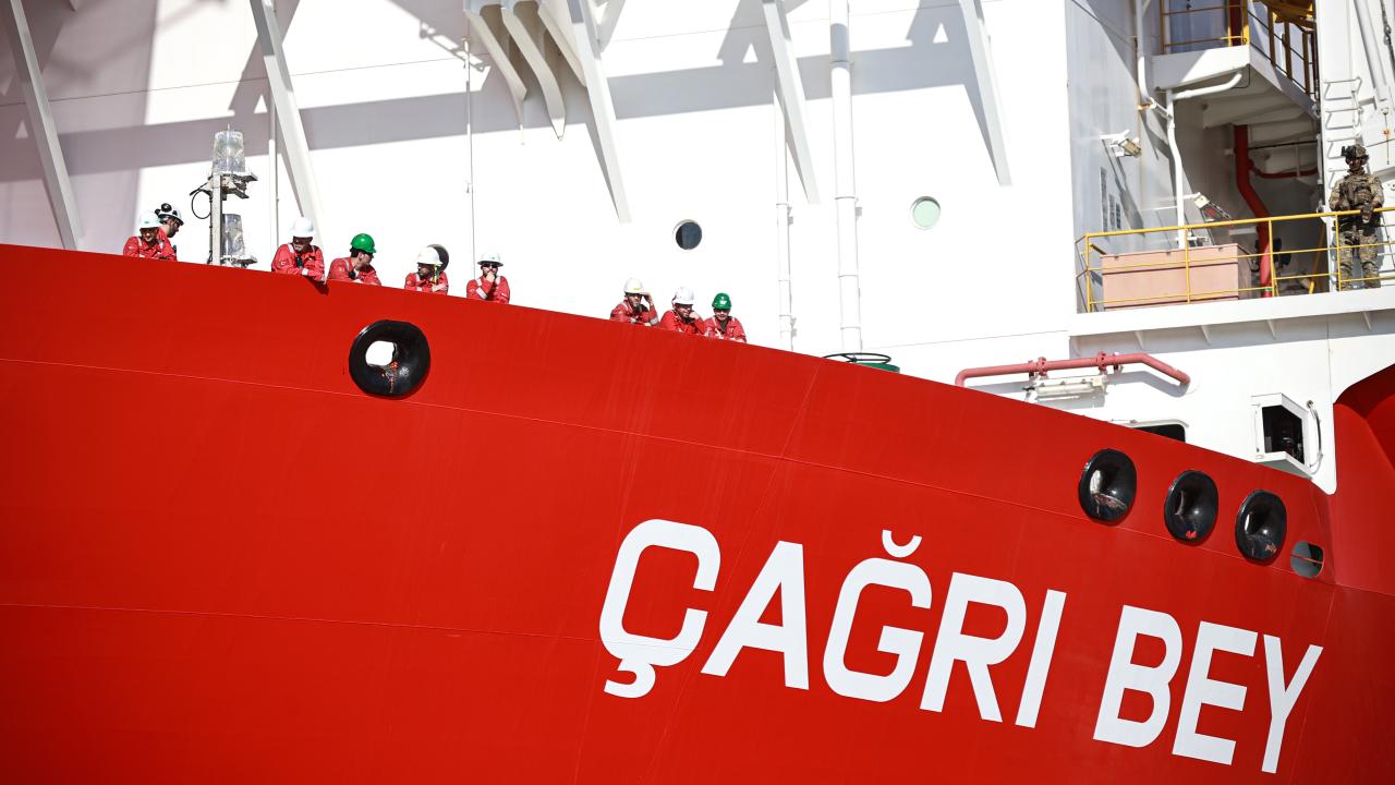 Türkiye'nin 7. nesil yeni ultra derin deniz sondaj gemisi Çağrı Bey'in ilk görev yeri Somali'ye uğurlanması için Mersin'in Silifke ilçesi Taşucu Limanı açıklarındaki Ağalar İskelesi'nde tören düzenlendi.